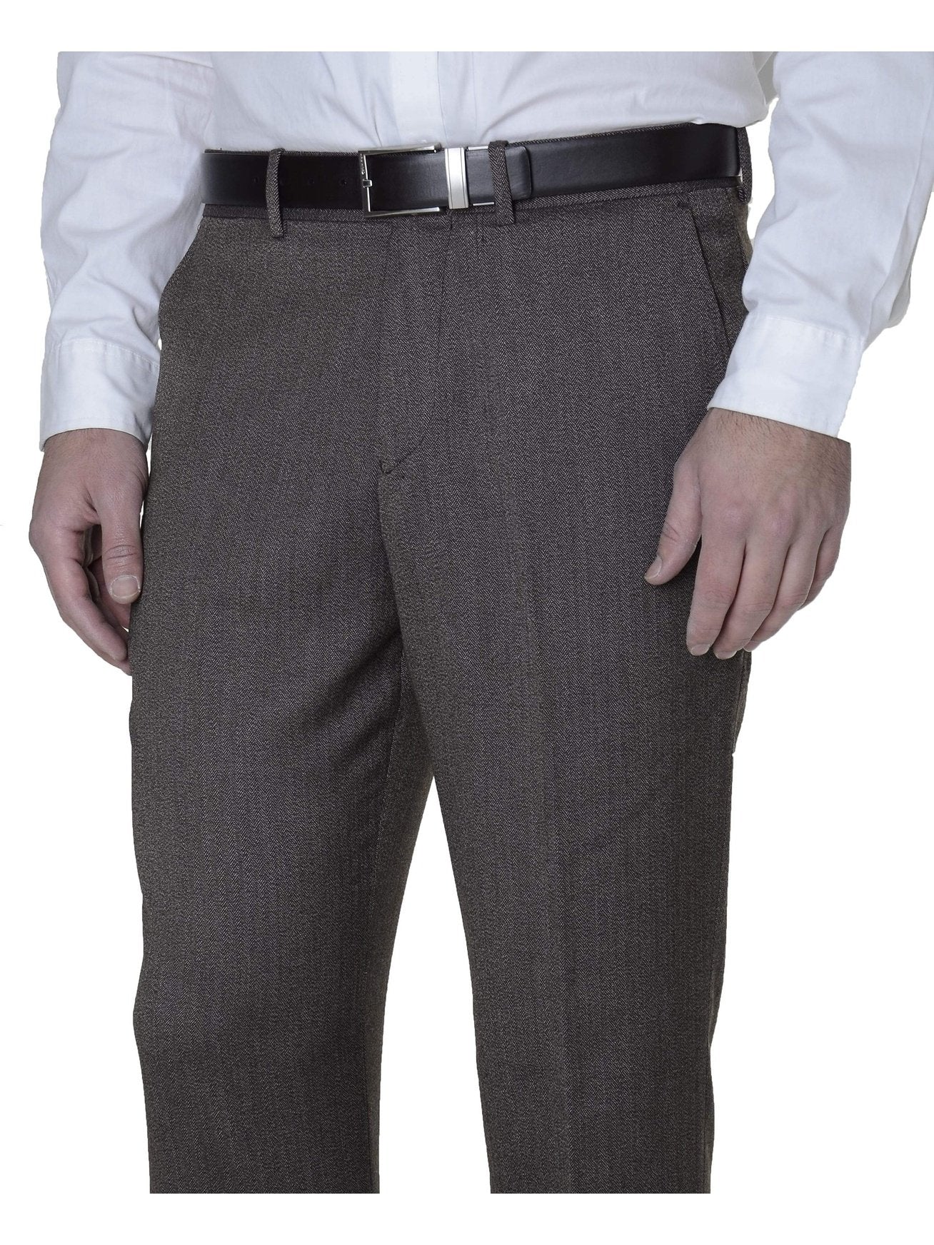 American Rag Mens Slim Fit Brown Herringbone Machine Washable Dress Pants