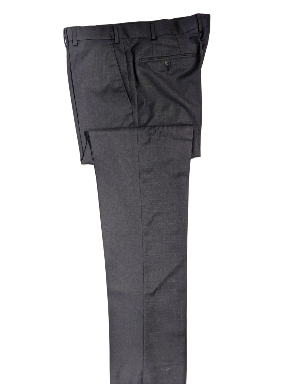 This Armani Collezioni G-Line suit in charcoal grey wool blends classic tailoring with modern elegance. Designed in a slim fit, it features a notch lapel, two-button closure, and dual vents for comfort and style. A sharp choice for business or formal wear.
