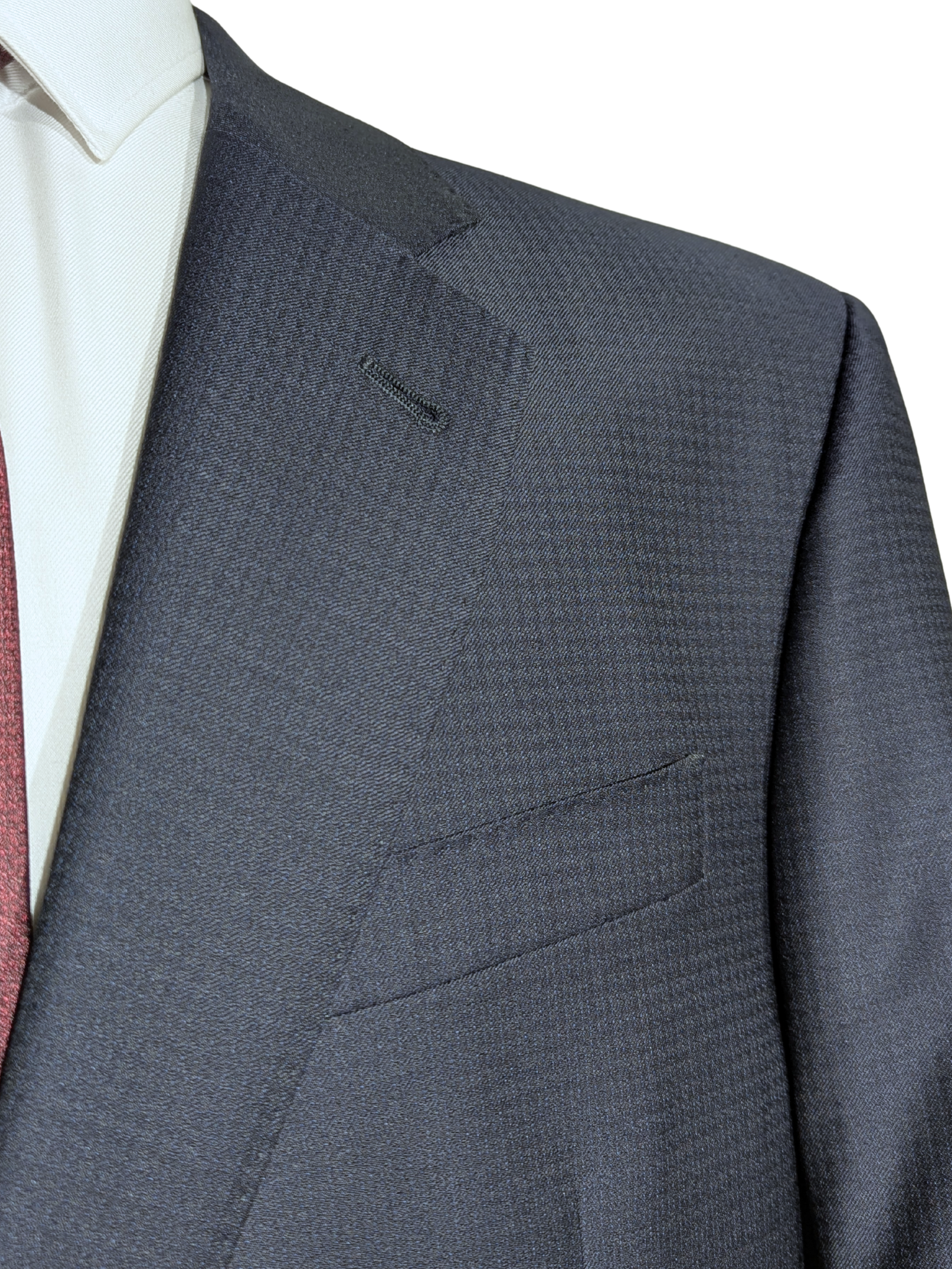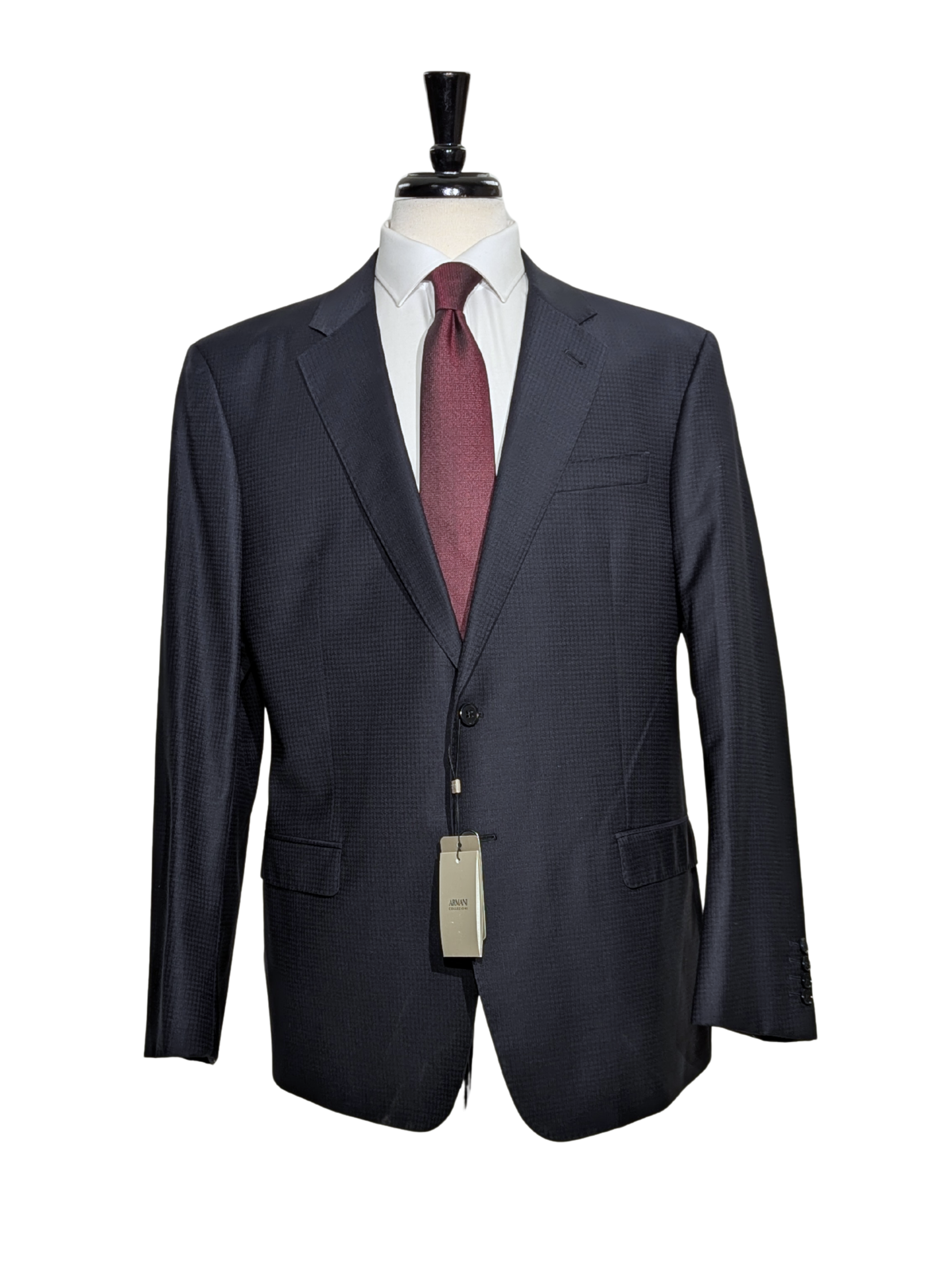 Armani Collezioni G-line Navy Blue Check Notch Lapel Wool Slim Fit 2-Button Suit - 48R