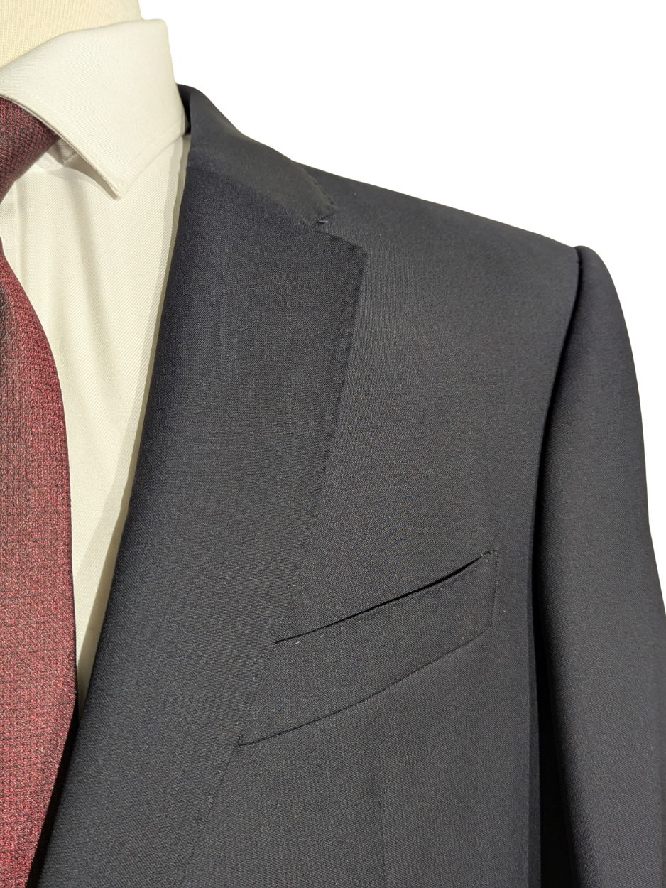 Armani Collezioni Solid Black Notch Lapel 2-Button Wool Suit - 48R