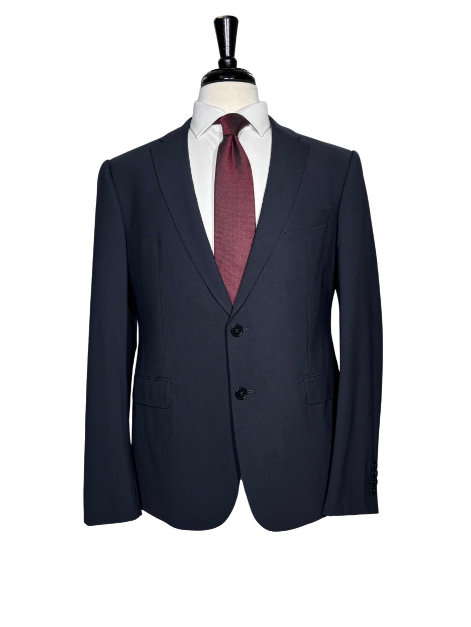 Armani Collezioni Solid Dark Blue M-Line Notch Lapel Modern Fit 2 Button Wool Suit - 44R
