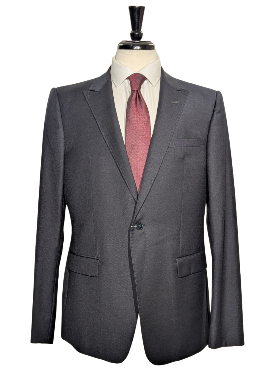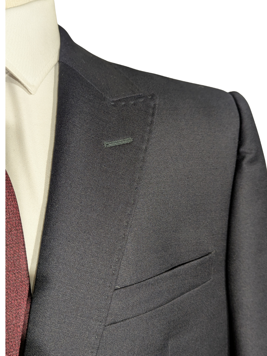 Armani Collezioni Solid Navy Blue Classic Fit Peak Lapel 1 Button Wool Suit 44R