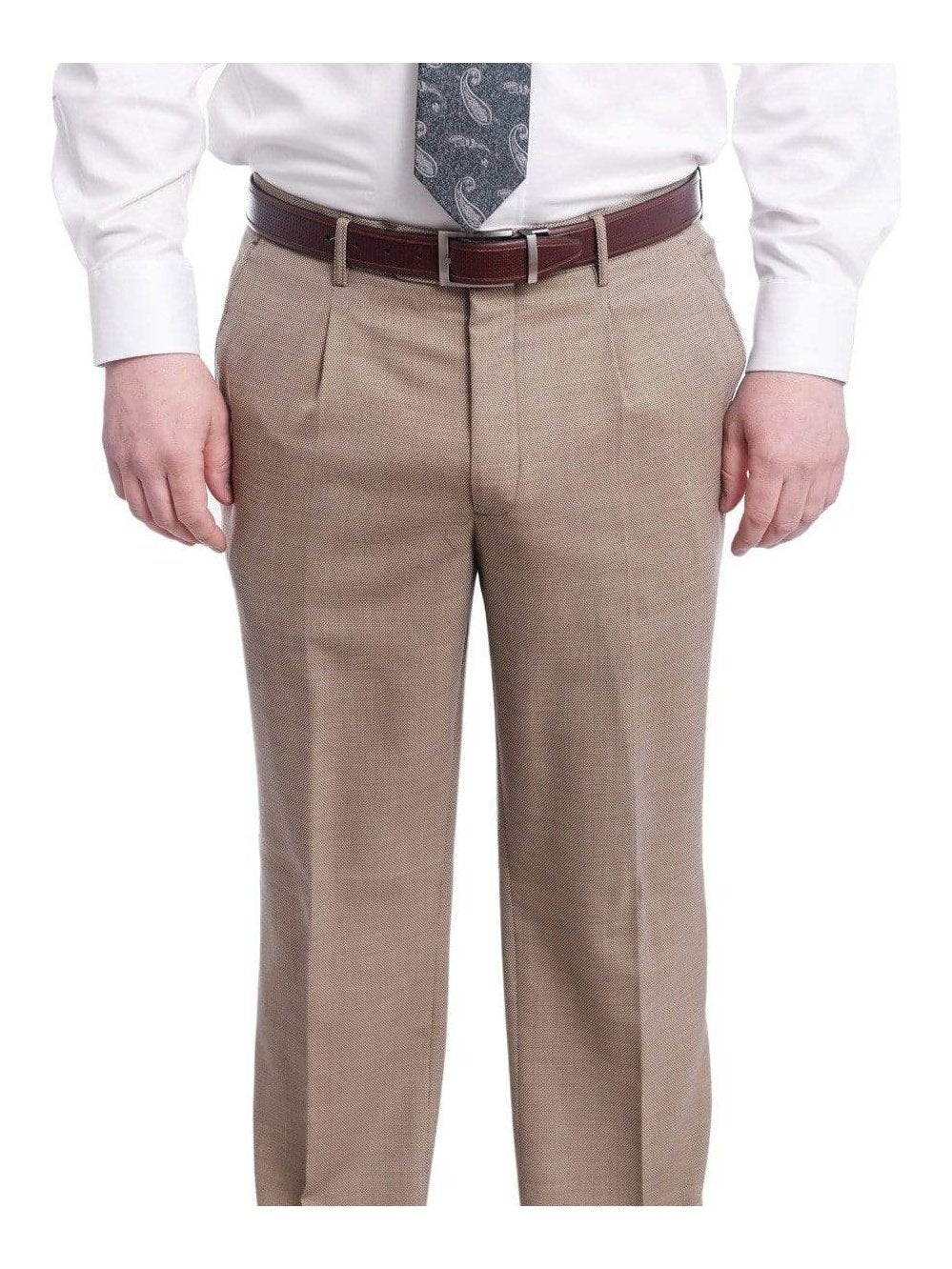 Arthur Black Classic Fit Light Brown Birdseye Single Pleated Wool Dress Pants