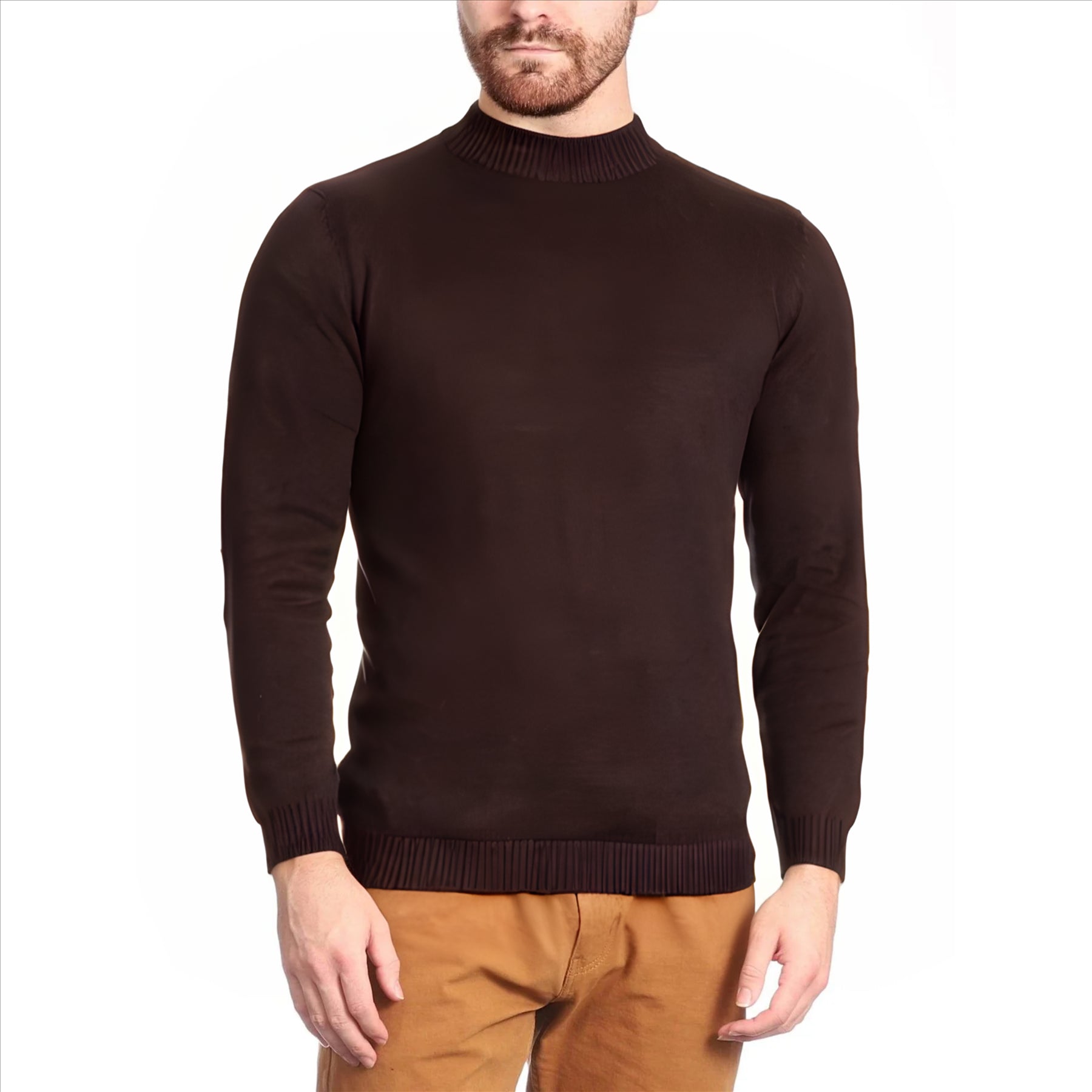 Arthur Black Men's Solid Brown Pullover Cotton Blend Mock Neck Sweater Shirt