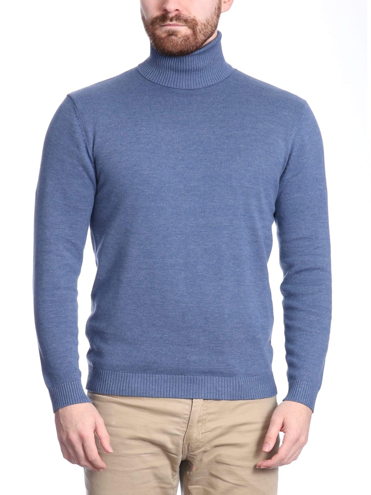Arthur Black Men's Solid Heather Blue Pullover Cotton Blend Turtleneck Sweater