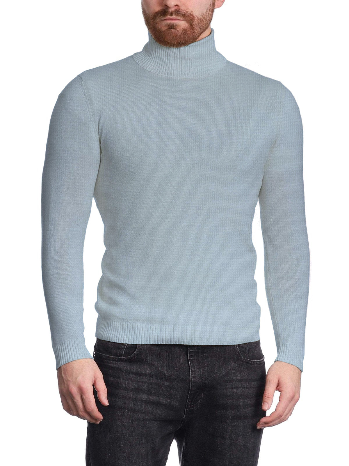 Arthur Black Men's Solid Light Blue Pullover Cotton Blend Turtleneck Sweater