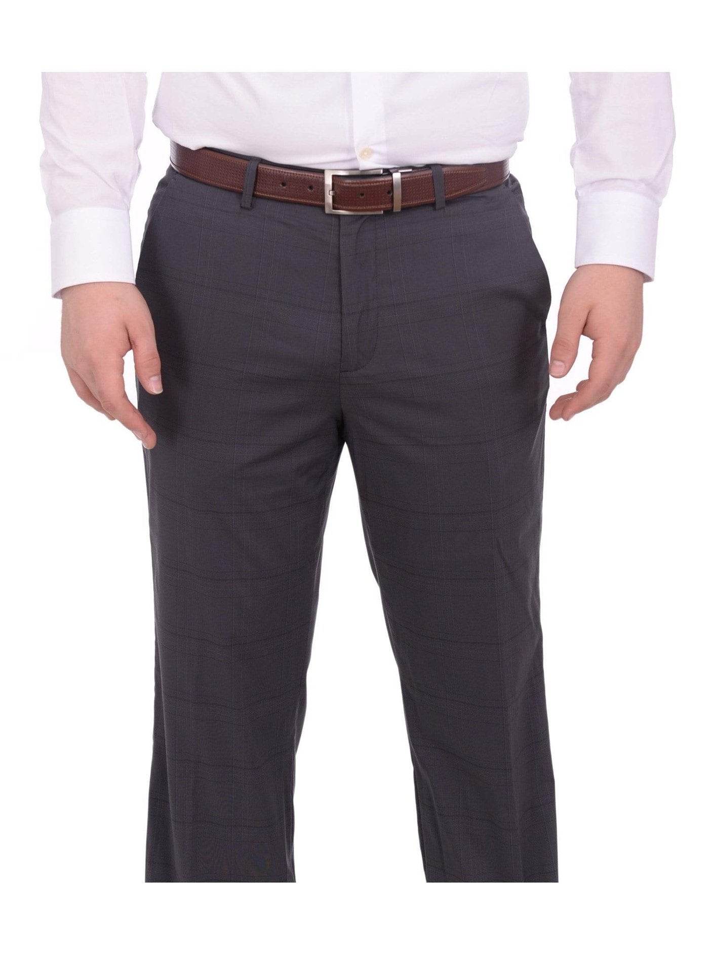 Calvin Klein Regular Fit Gray Glen Plaid Flat Front Cotton Blend Dress Pants
