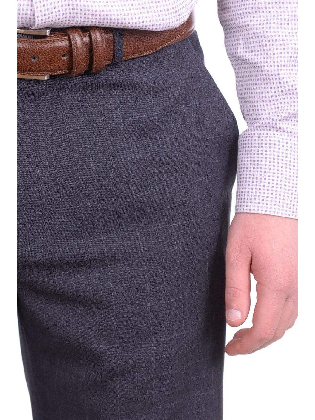 Calvin Klein Straight Fit Blue With Gray Windowpane Overcheck Dress Pants