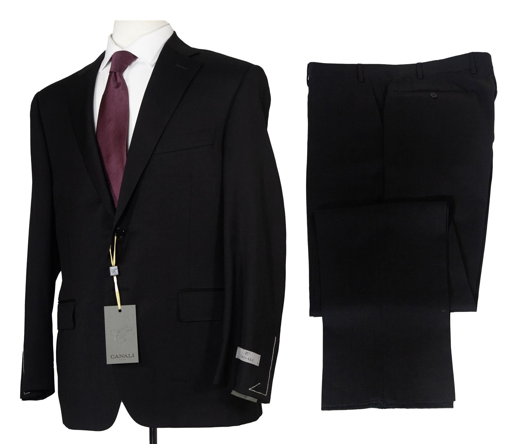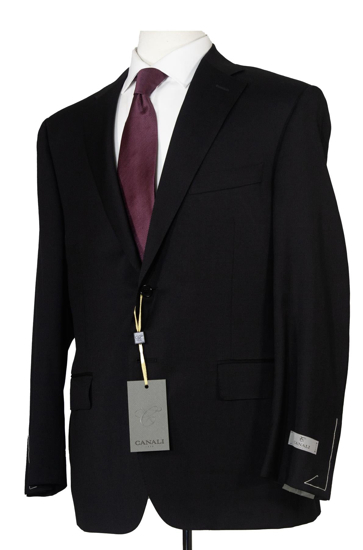 Step into timeless elegance with this impeccably tailored, canvassed solid black 100% wool suit. Crafted with signature Italian precision, this sophisticated masterpiece effortlessly exudes refined taste, making a lasting impression in any special occasion or business setting.