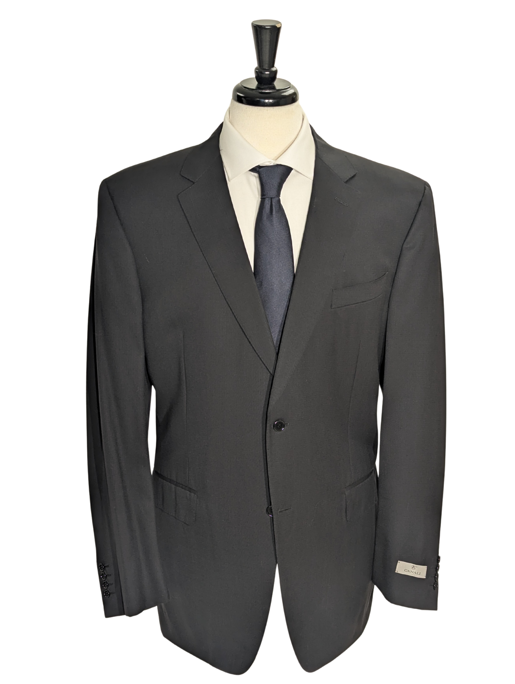 Canali Black Tonal Micro Check 100% Wool Suit 48L