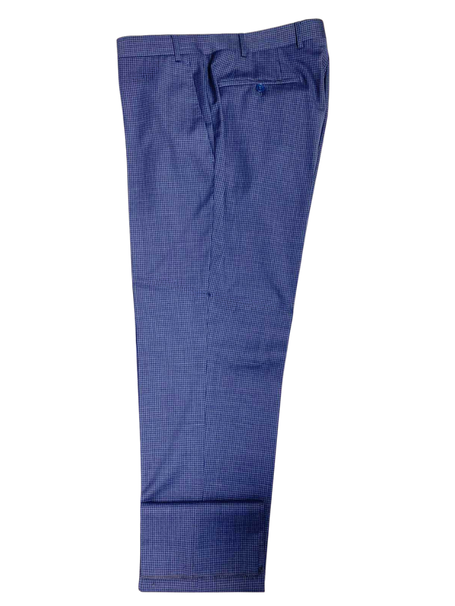 This Canali blue check suit is crafted from 100% wool. It features a notch lapel, two-button front, and side vents for comfort and mobility. The subtle check pattern adds depth without overpowering, making it ideal for both business and formal wear. Finished with flap pockets and flat-front trousers, this suit reflects timeless Italian tailoring.