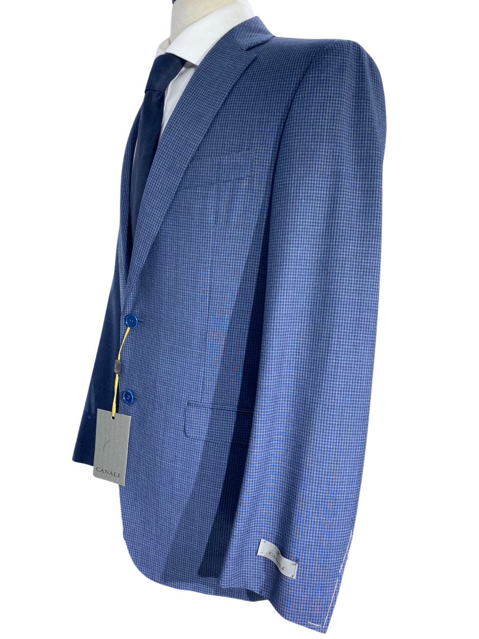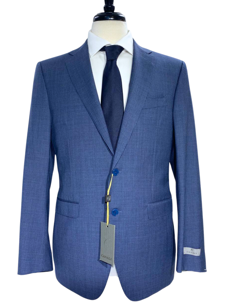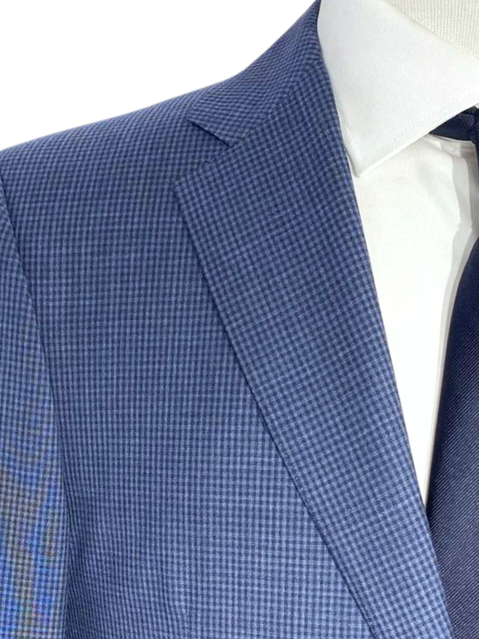 Canali Blue Check Notch Lapel 100% Wool 2 Button Suit 40R