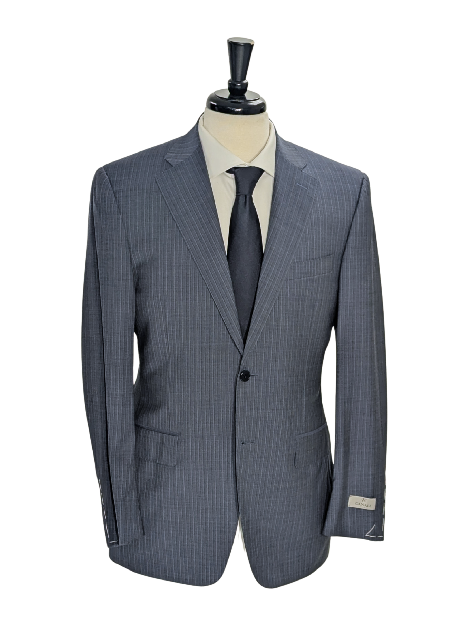Canali Blue Pinstriped 100% Wool Suit 38R