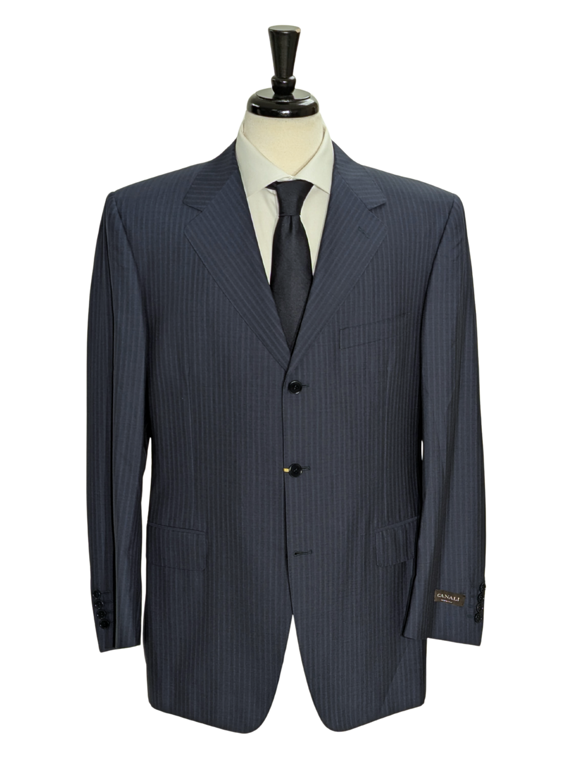 Canali Blue Tonal Pinstriped 100% Wool 3-Button Suit 44R