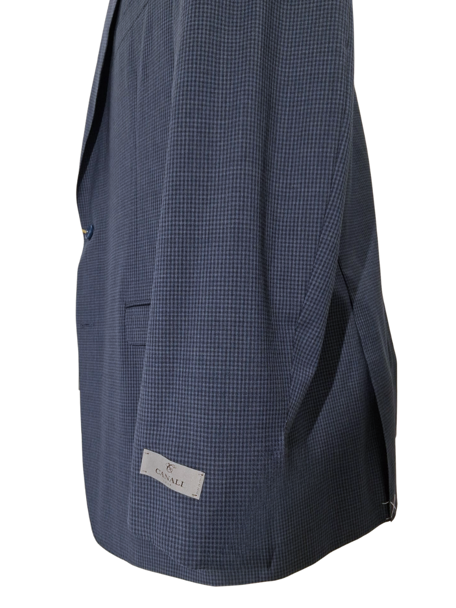 This Canali blue and grey micro check suit offers a sophisticated alternative to solid tones, providing subtle patterning that enhances depth and texture. The fine micro check weave gives the fabric a refined, modern look while maintaining the versatility of classic tailoring.