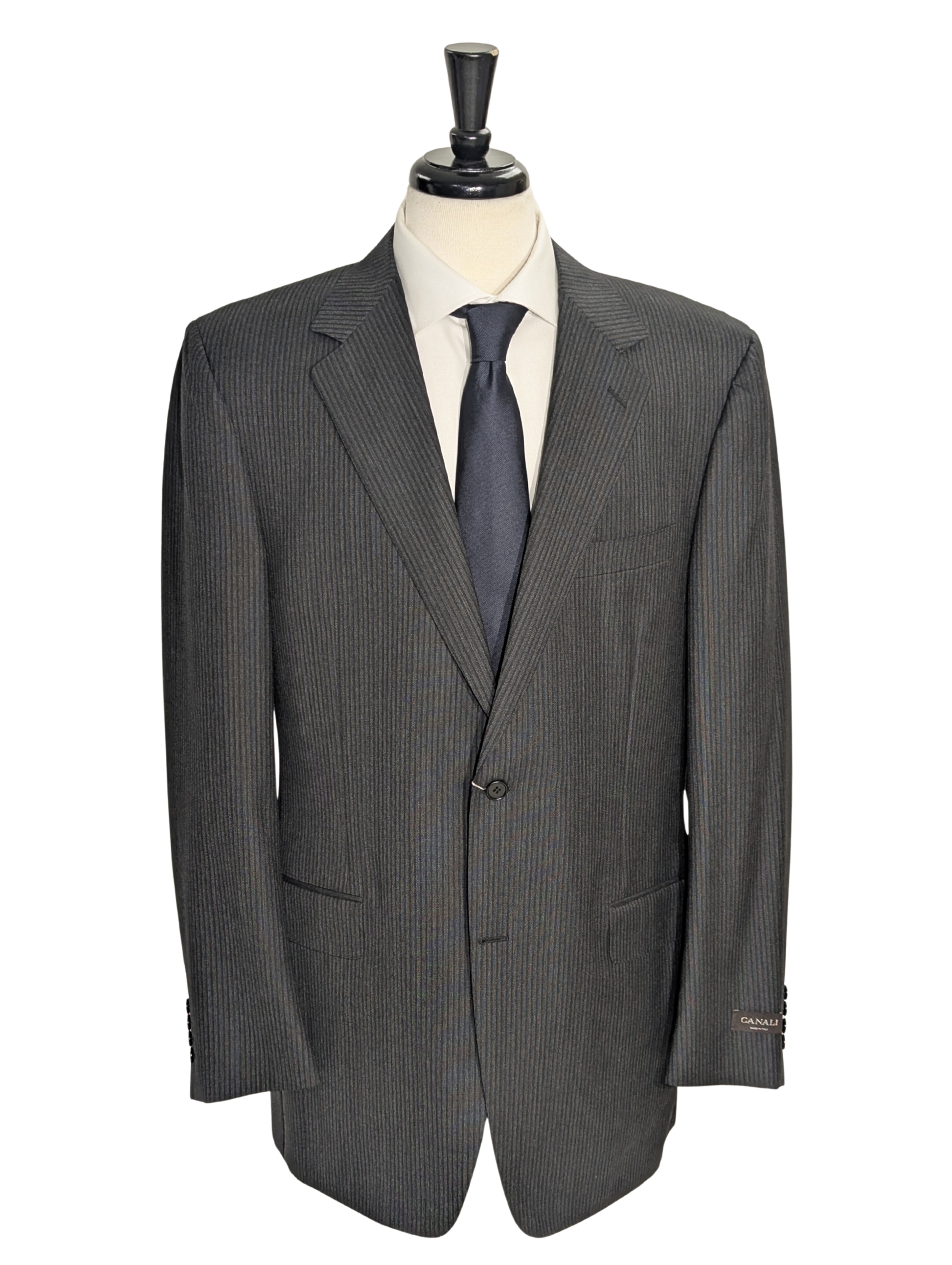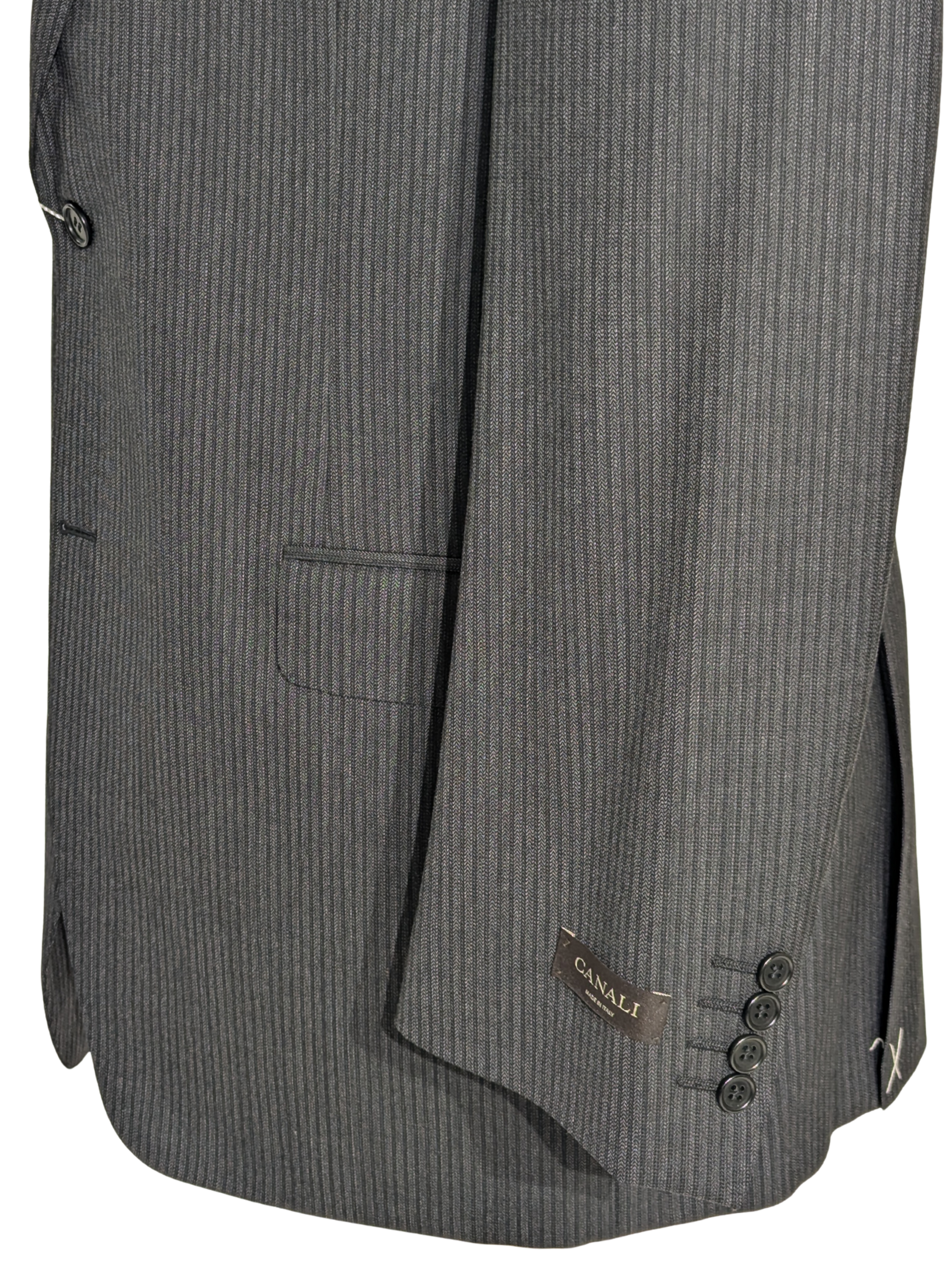 Canali Charcoal Pinstriped 100% Wool Suit 44L
