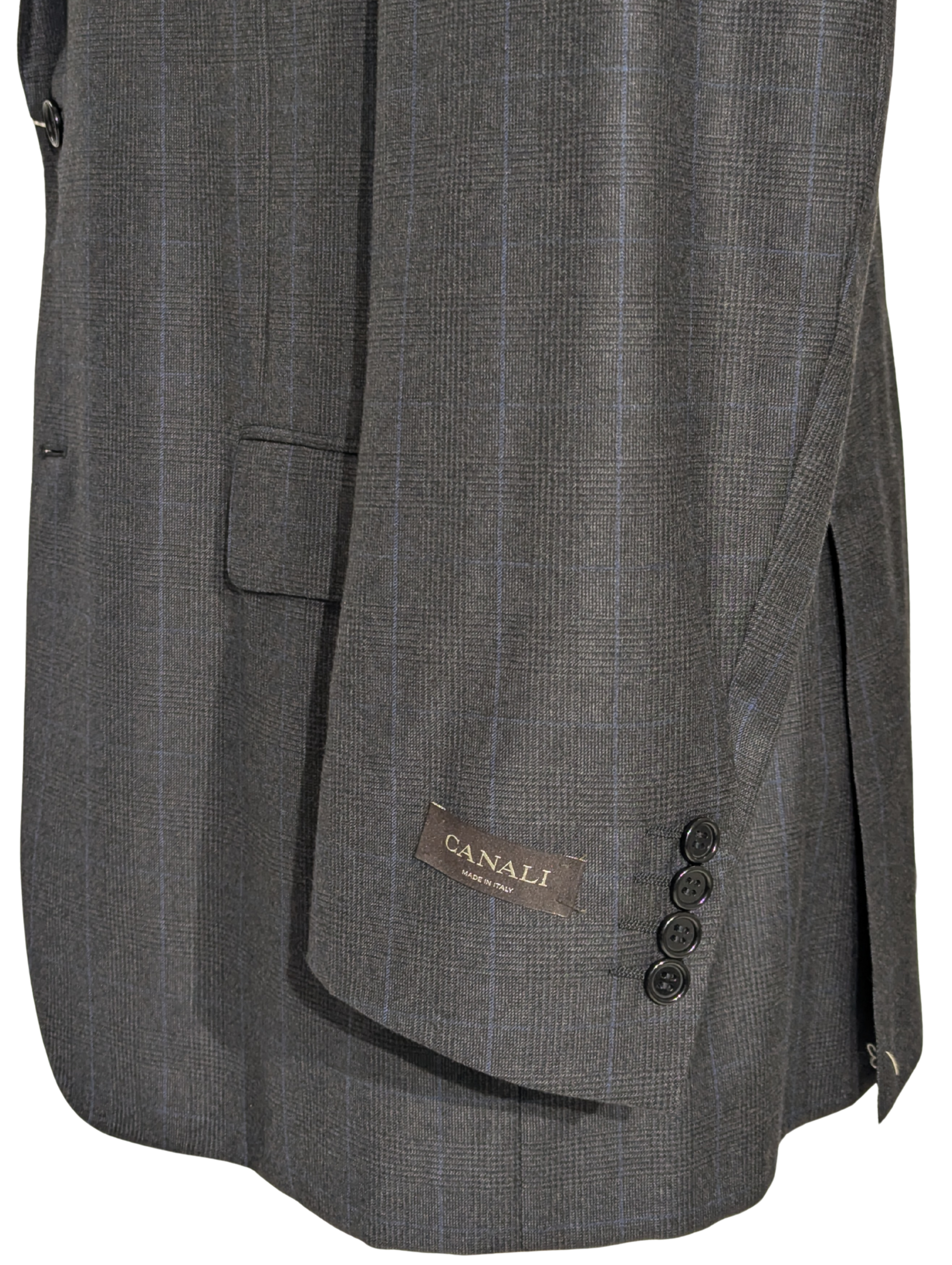 Canali Gray Glen Plaid 100% Wool Suit 46R