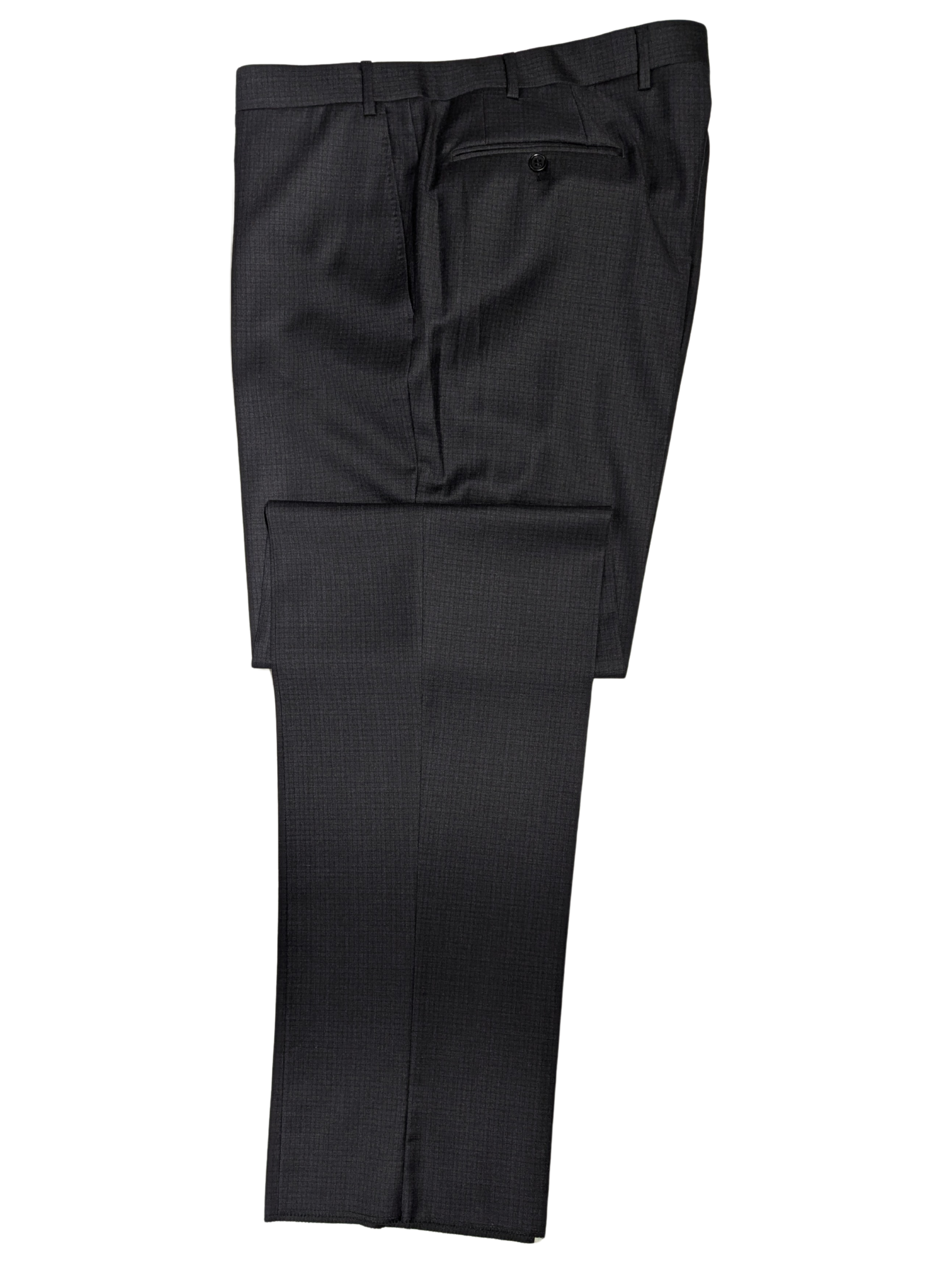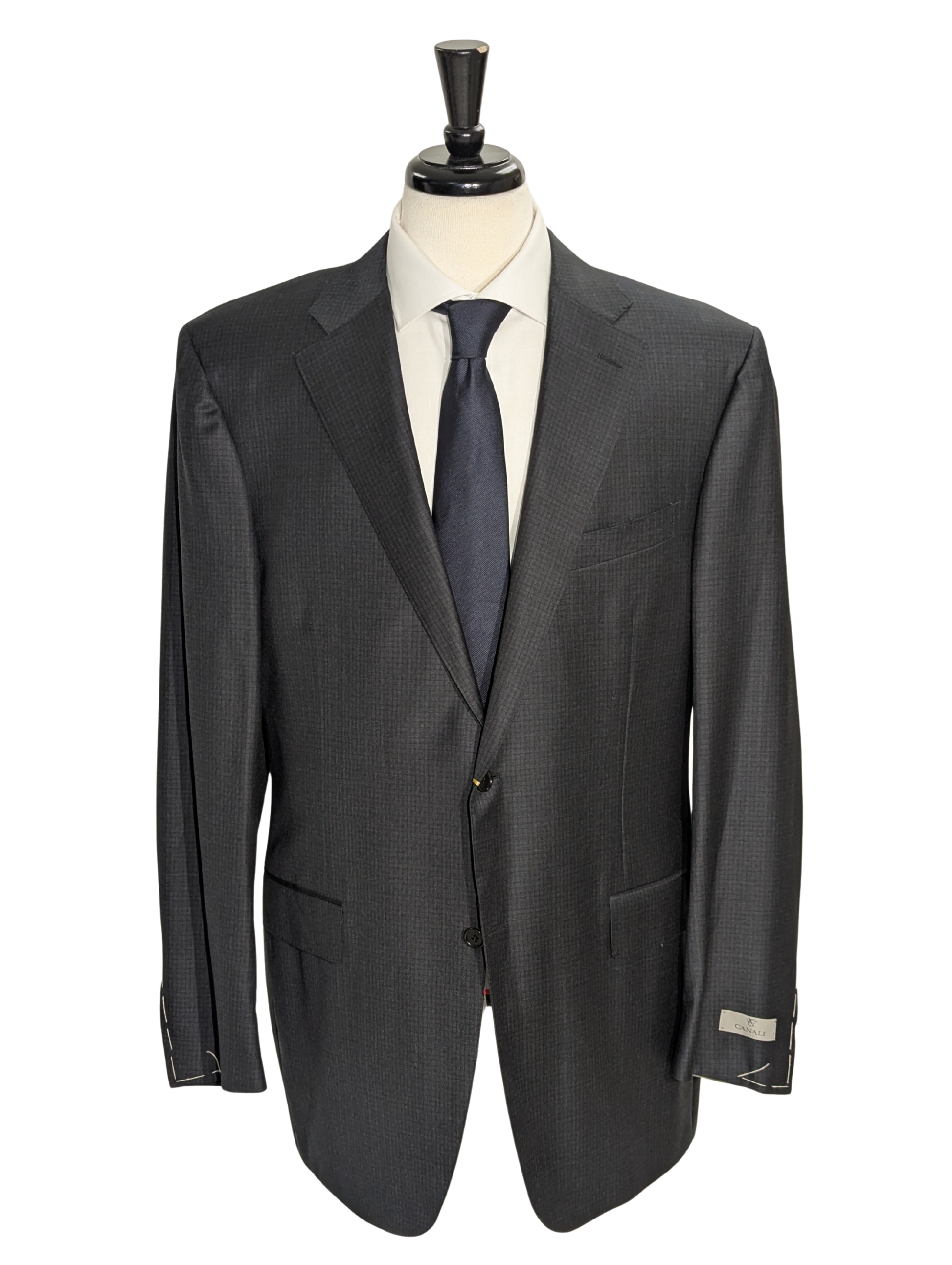 This Canali suit features a refined microcheck pattern in a soft blend of blue and gray tones, offering a modern yet understated take on classic tailoring. Crafted in Italy from premium wool, the fine check pattern delivers texture and depth while maintaining a clean, professional appearance. The fully-canvassed construction provides superior structure and drape, with full lining and dual side vents for enhanced comfort. The jacket features a two-button front and notch lapels for timeless appeal, paired with flat-front trousers for a sleek, contemporary silhouette. Ideal for business or smart occasions, this suit combines versatility with Canali’s renowned craftsmanship.