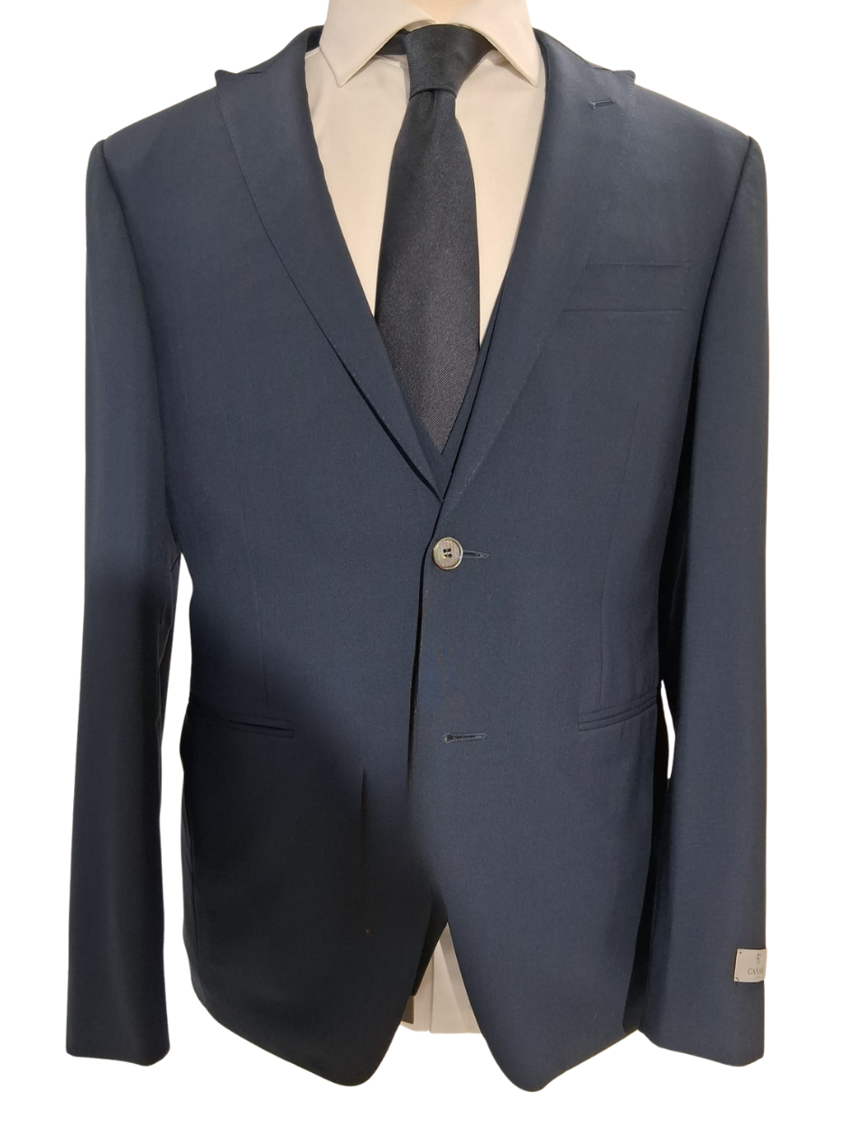 Canali Solid Navy 3-piece 100% Wool Suit 42R