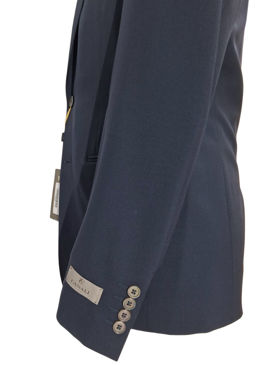 Refine your formal wardrobe with this Canali navy 3-piece suit, a pinnacle of Italian tailoring and understated luxury. Expertly crafted from 100% wool, this ensemble features a fully canvassed construction that enhances structure, ensures breathability, and maintains an elegant silhouette. The single-breasted jacket is adorned with mother-of-pearl buttons and showcases refined welt pockets and a single rear vent.