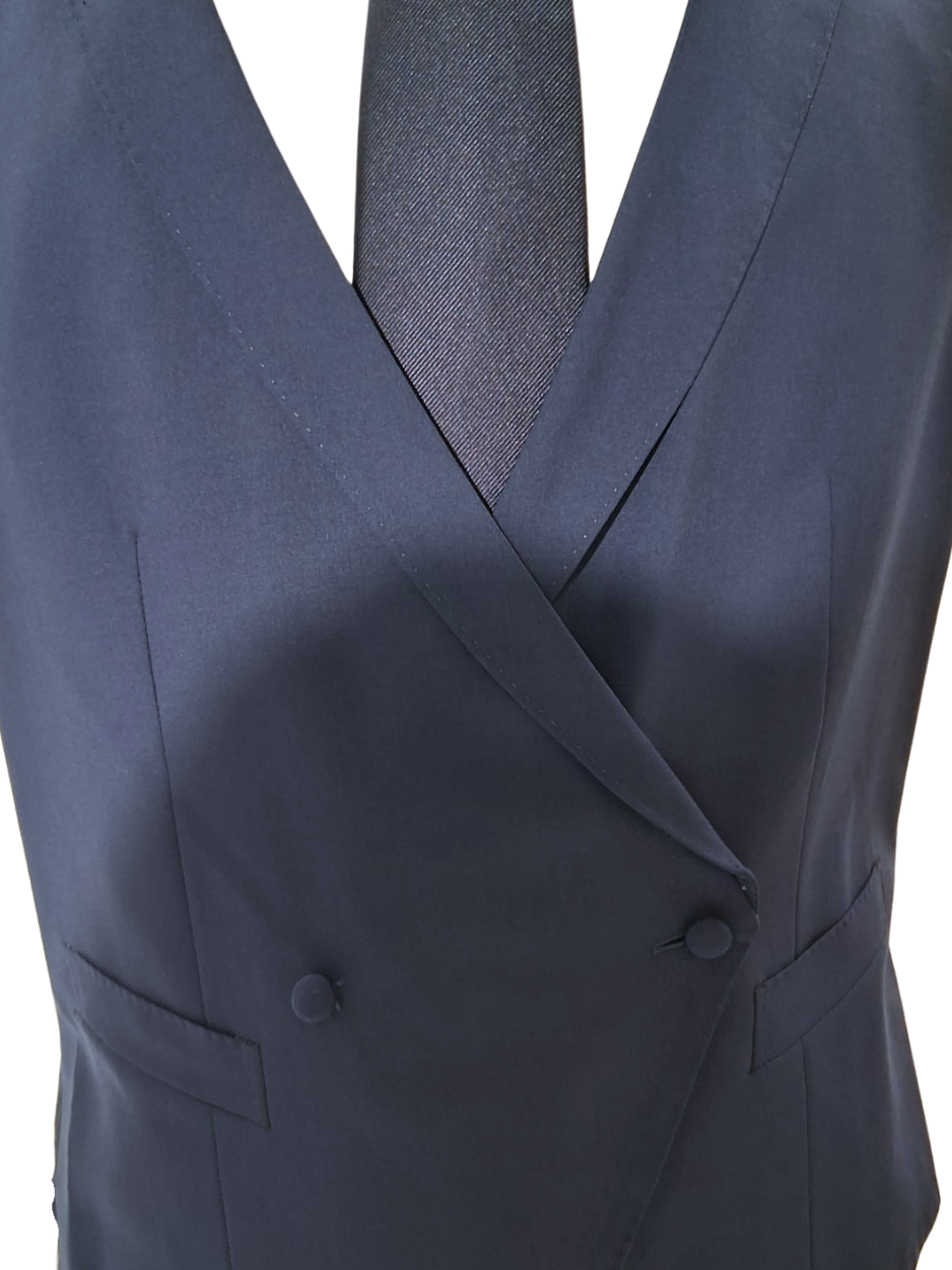 The accompanying double-breasted vest adds visual depth with lapels and cloth-covered buttons, offering a tailored, polished finish. Flat-front trousers complete the look, left unhemmed for custom tailoring. Designed for those who value both tradition and modern elegance, this suit is an ideal choice for weddings, business events, and distinguished gatherings where exceptional style is a must.