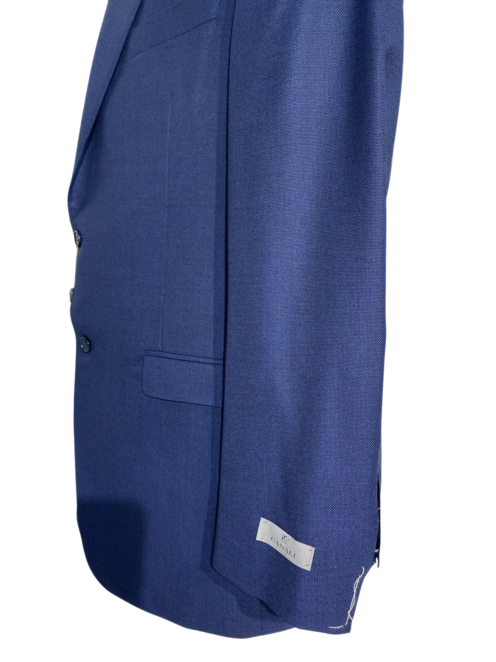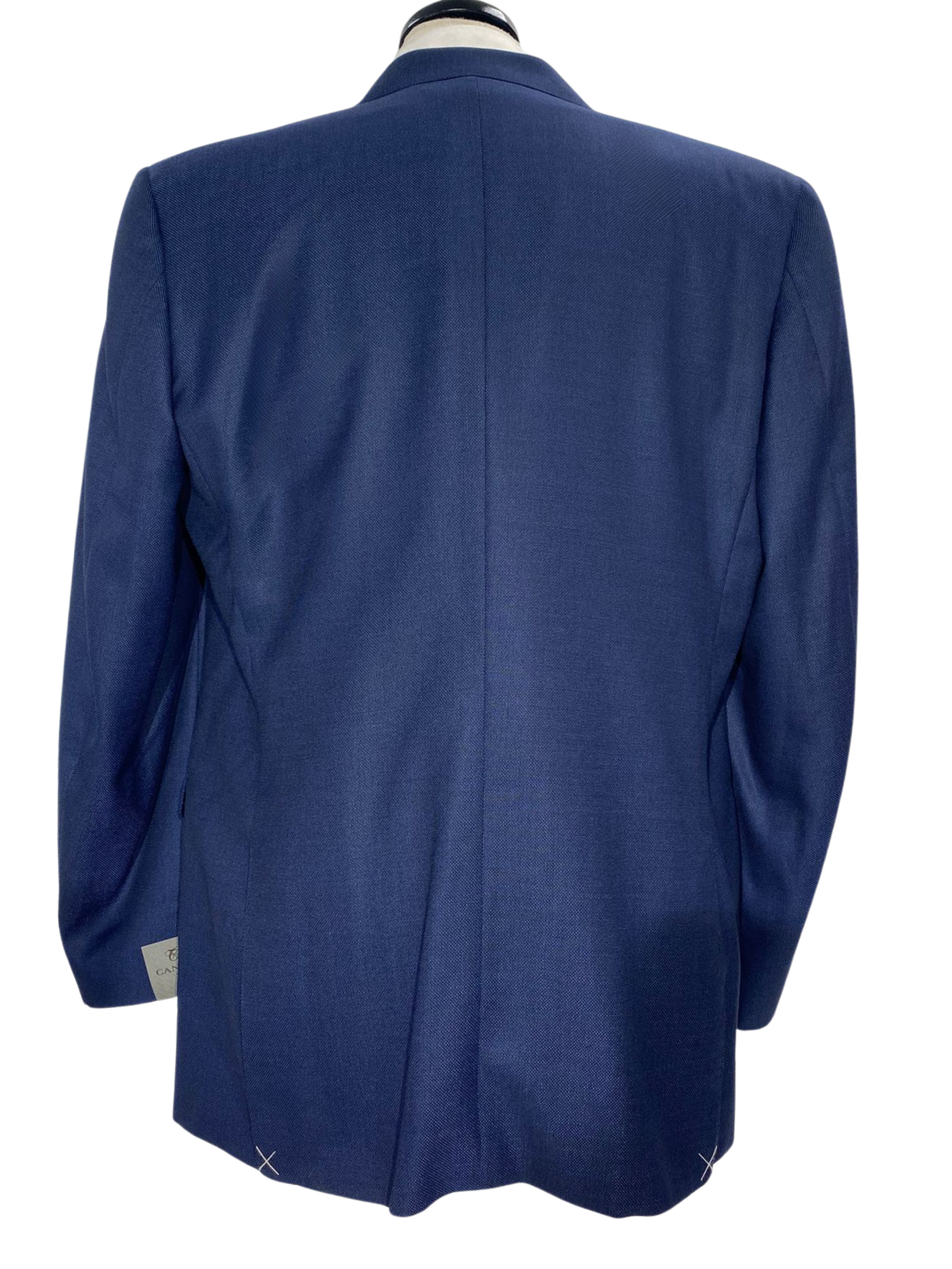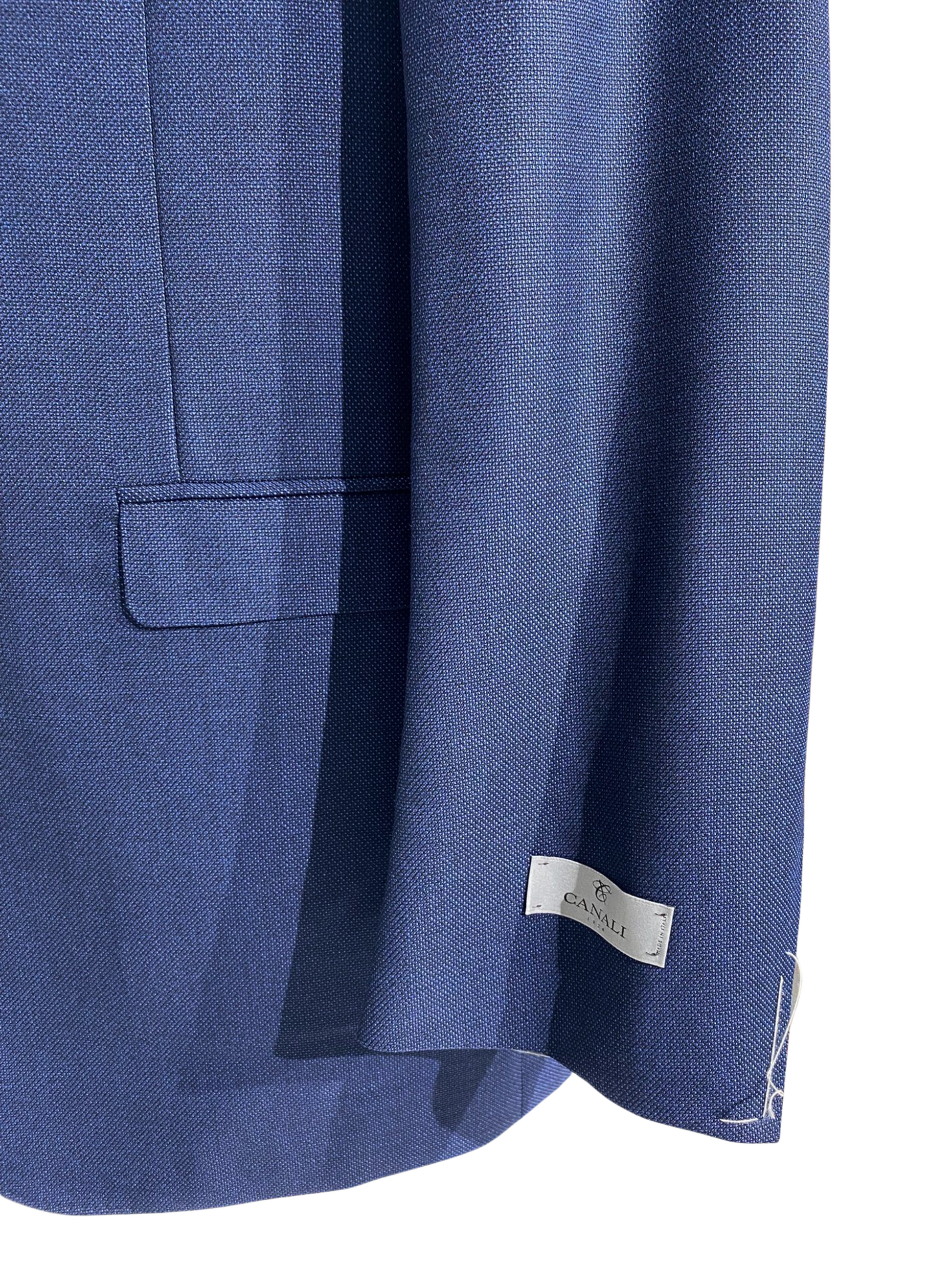 Canali Navy Blue Textured Notch Lapel 100% Wool 2 Button Suit 46L