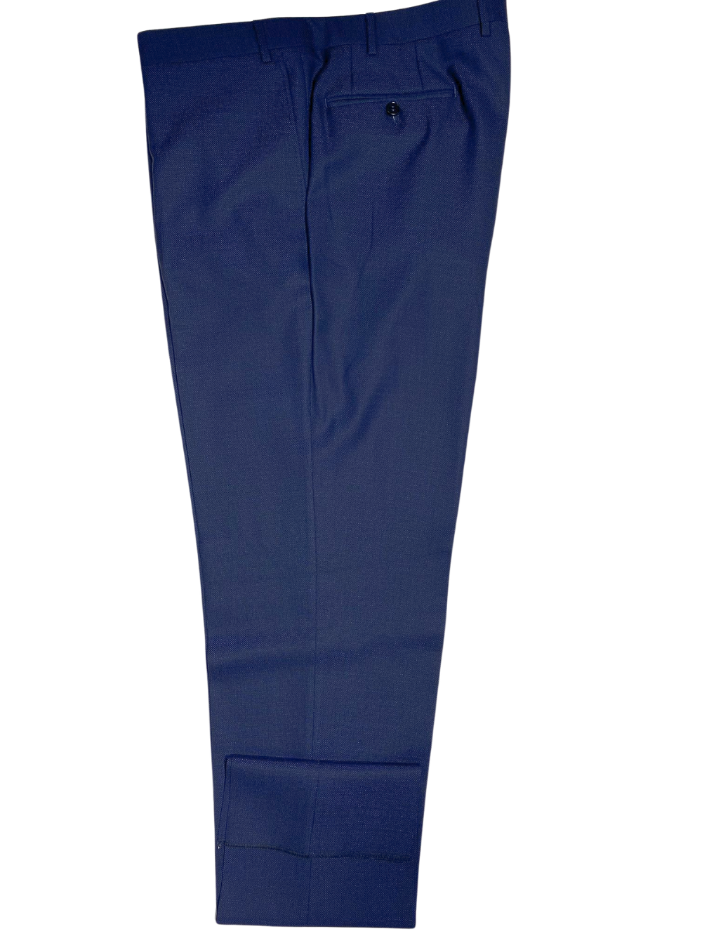 This Canali blue textured suit is crafted from 100% wool. It features a notch lapel, two-button front, and side vents for comfort and mobility. The textured pattern adds depth without overpowering, making it ideal for both business and formal wear. Finished with flap pockets and flat-front trousers, this suit reflects timeless Italian tailoring.