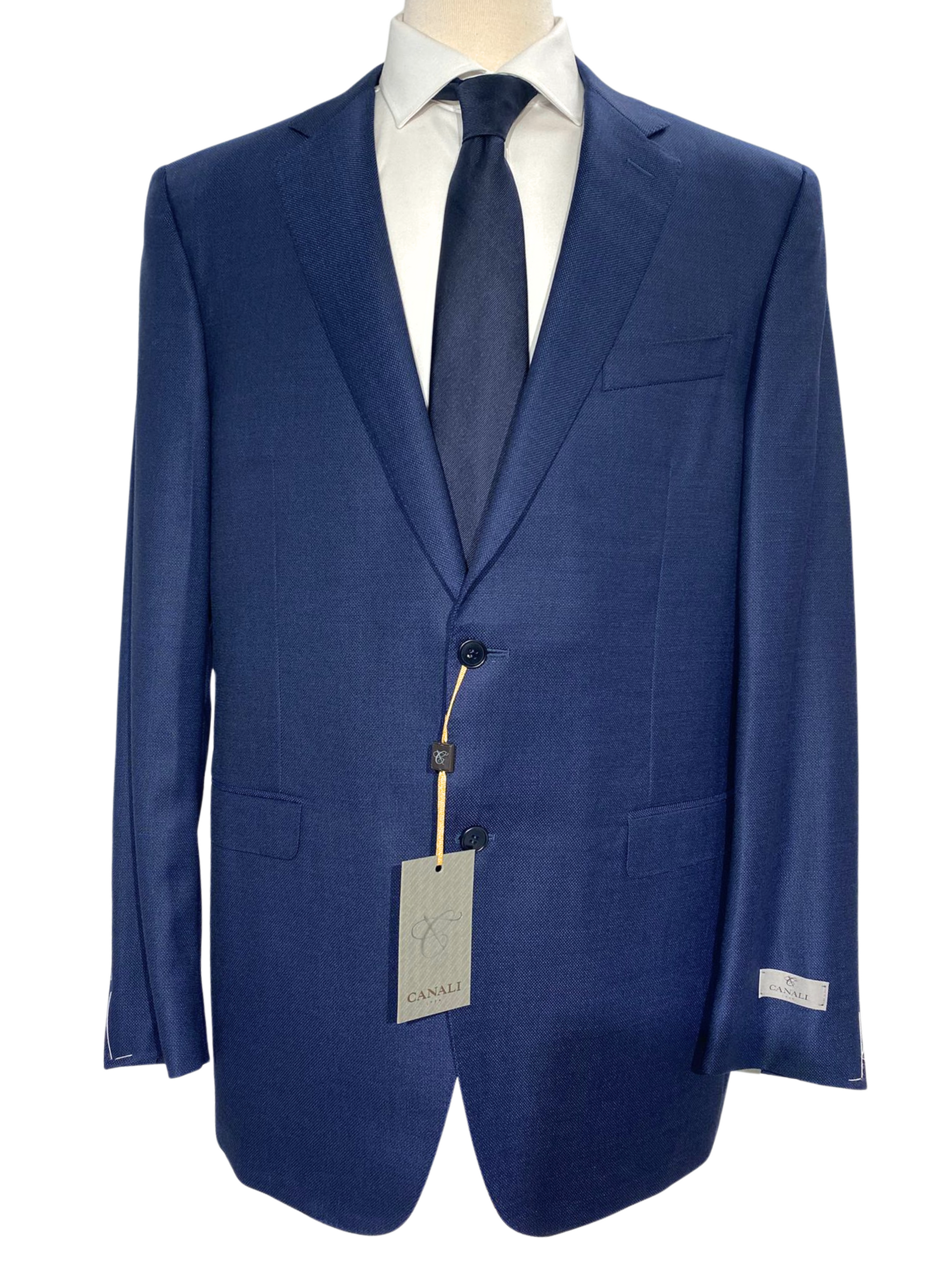 - Fully-canvassed jacket, fully lined, dual side vents, unfinished sleeve buttons.