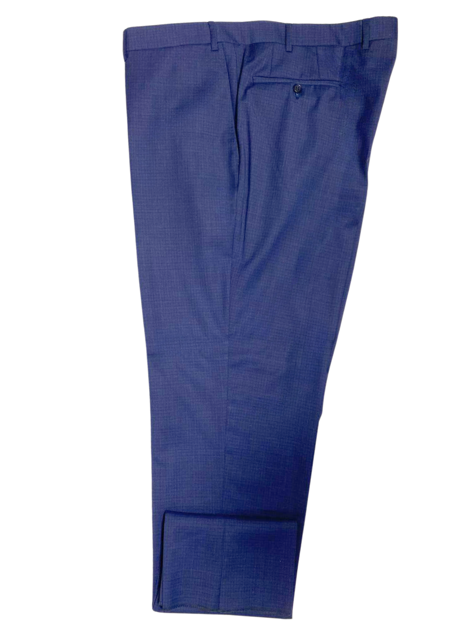 - Includes flat front trousers and a two-button jacket.