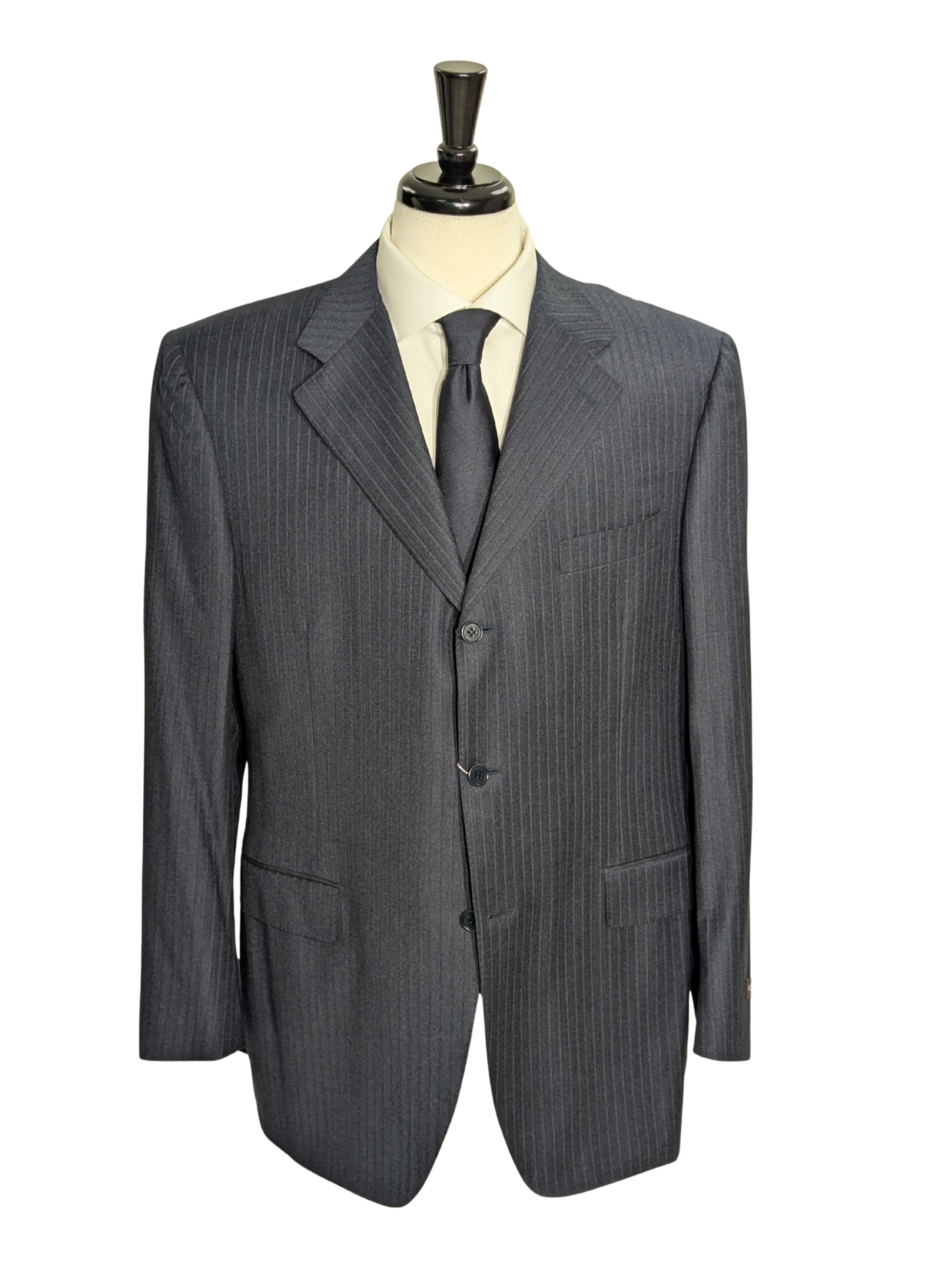 Canali Navy Pinstriped 100% Wool 3-Button Suit 44R