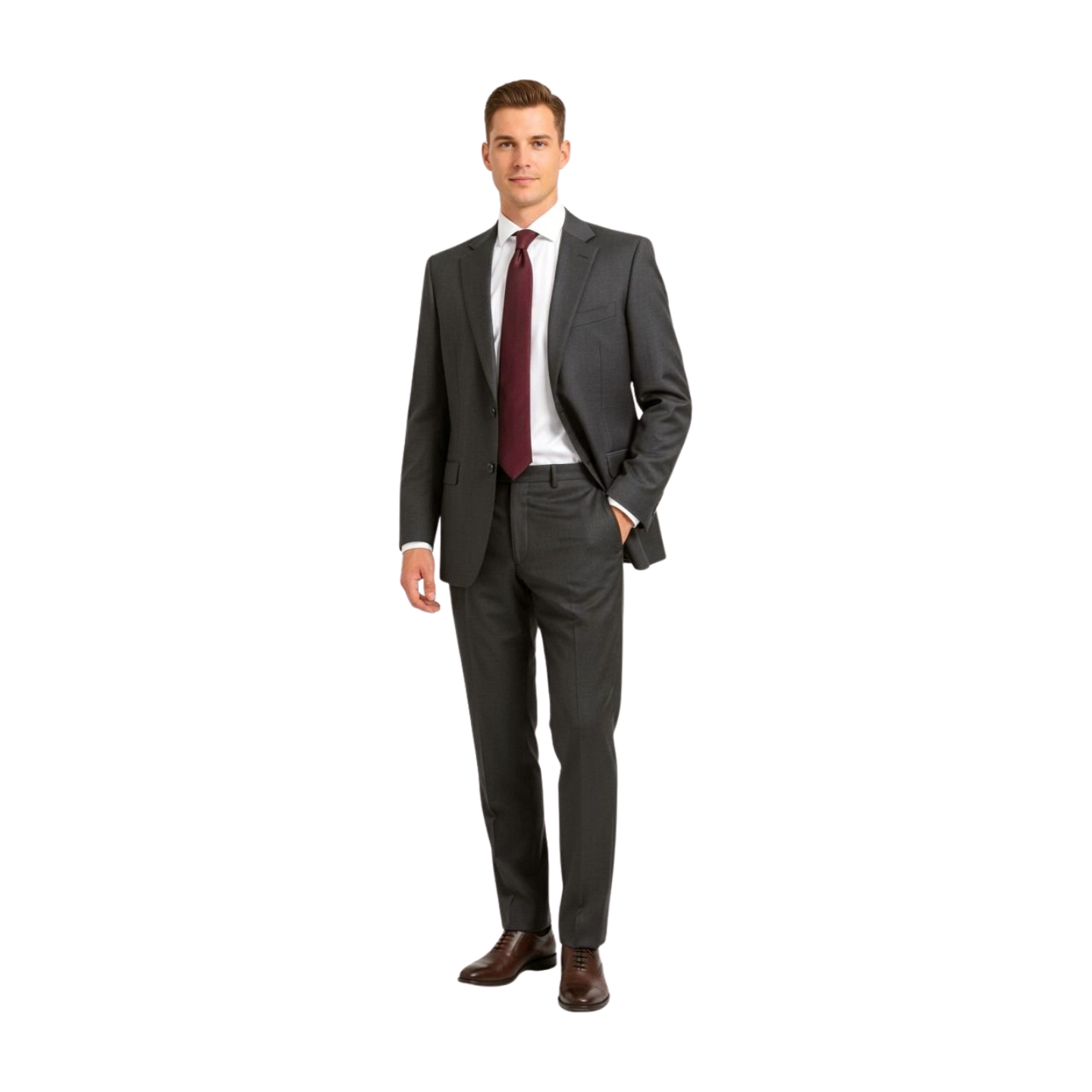 Canali Solid Charcoal 100% Wool 2 Button Suit 46L