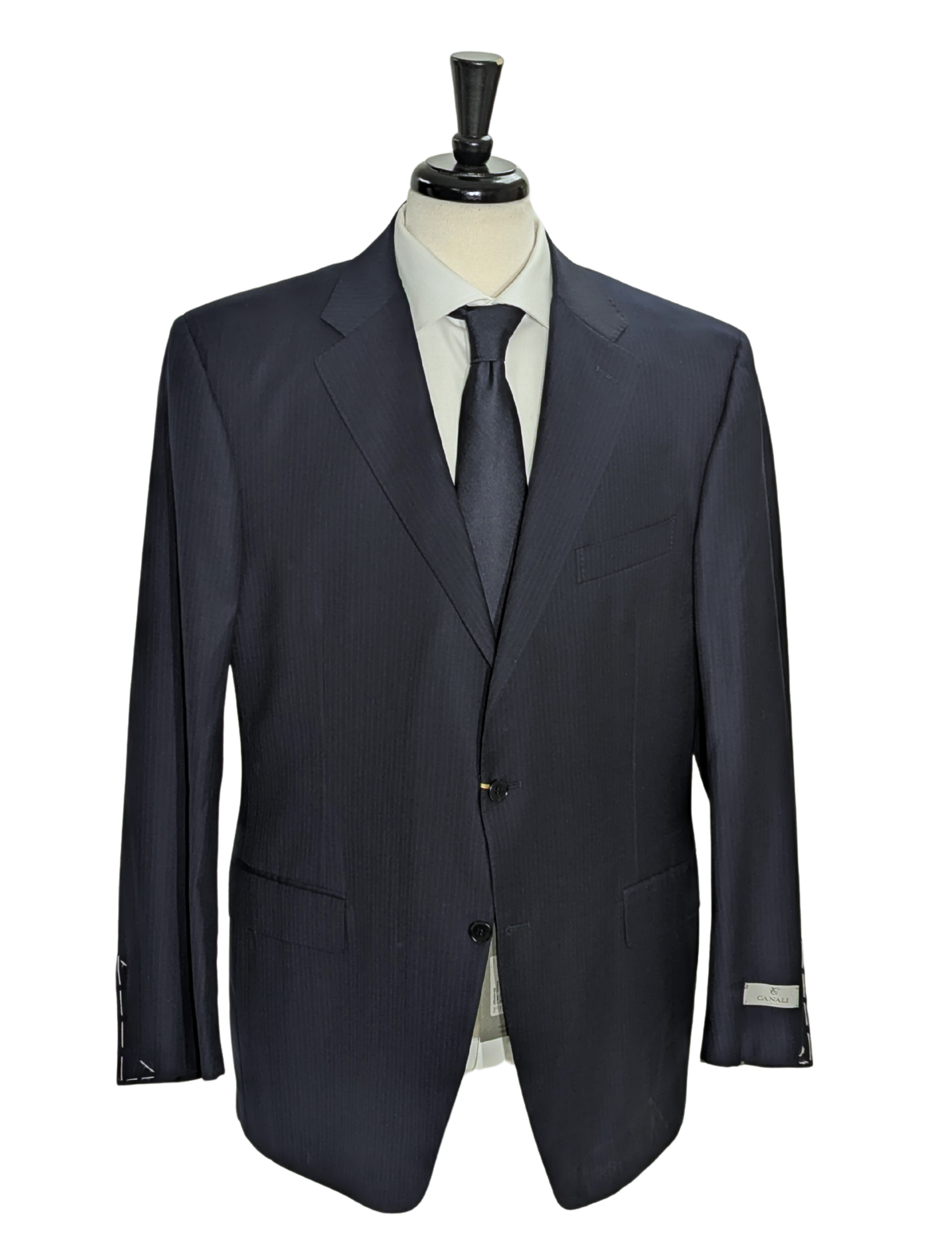 Canali Navy Tonal Pinstriped 100% Wool Suit 46R