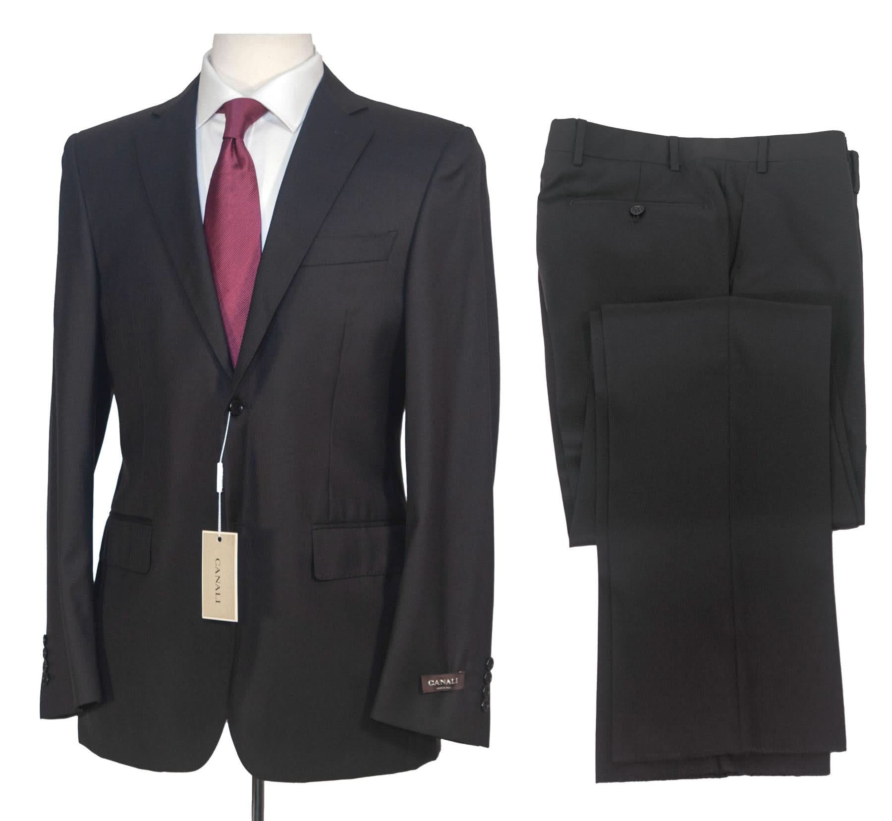 Elevate your formal wardrobe with this sophisticated Canali men's suit, crafted in Italy from pure wool, this black suit embodies refined elegance with a structured fit and high-quality construction. The jacket features notch lapels, a classic full canvas feel, and dual vents for enhanced movement and breathability. Perfect for business, formal events, or evening affairs, this suit pairs traditional craftsmanship with a modern sensibility, delivering both comfort and polish. Canali’s attention to detail and luxurious fabric make this an essential piece for any discerning gentleman.