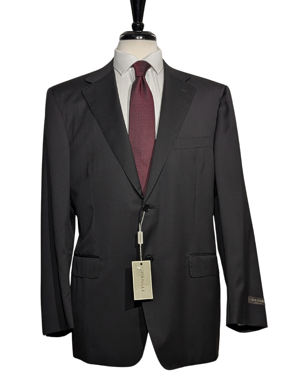 Canali Solid Black Classic Fit Notch Lapel 2 Button Wool Suit 44R