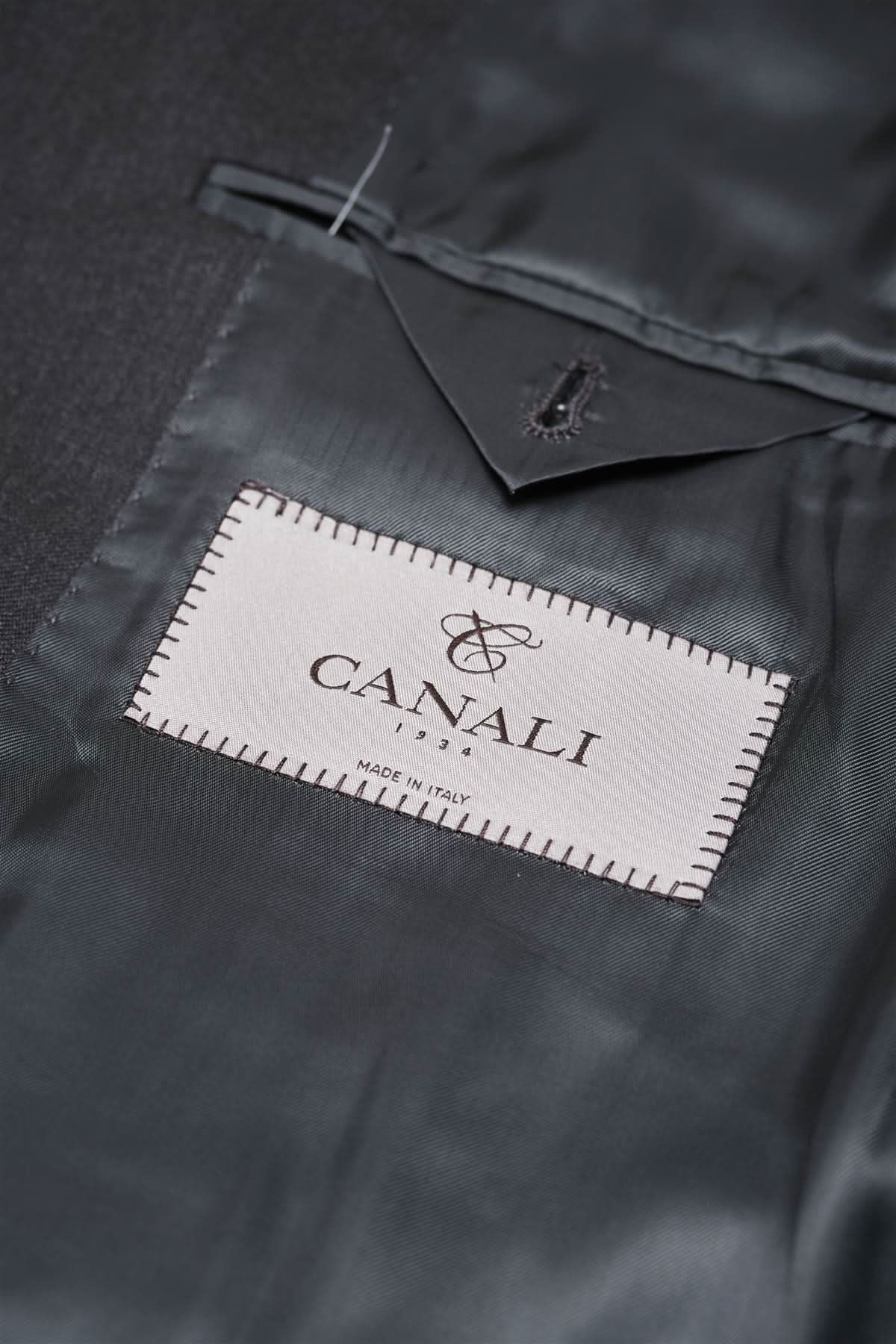 This Canali solid charcoal suit is a timeless staple of refined menswear, tailored in Italy from 100% wool. The rich charcoal fabric offers a smooth, elegant drape and year-round versatility, ideal for business, formal events, or elevated everyday wear. The fully-canvassed jacket ensures long-lasting structure and natural shaping, featuring a two-button front, notch lapels, full lining, and dual side vents for breathability and ease of movement. Paired with flat-front trousers, this suit delivers a clean, contemporary silhouette grounded in classic tailoring. Canali’s expert craftsmanship is evident in every detail, from fabric selection to final stitch.