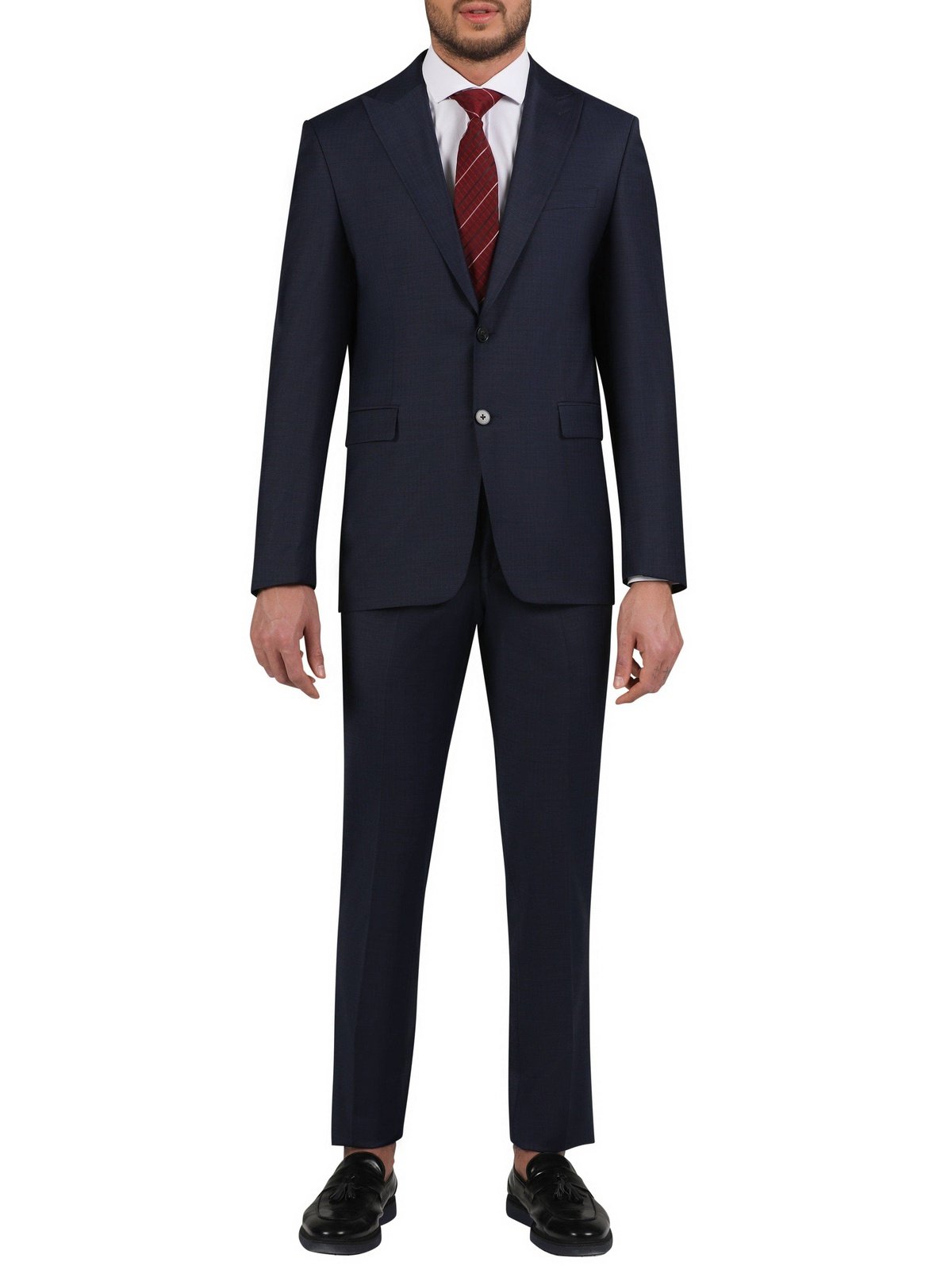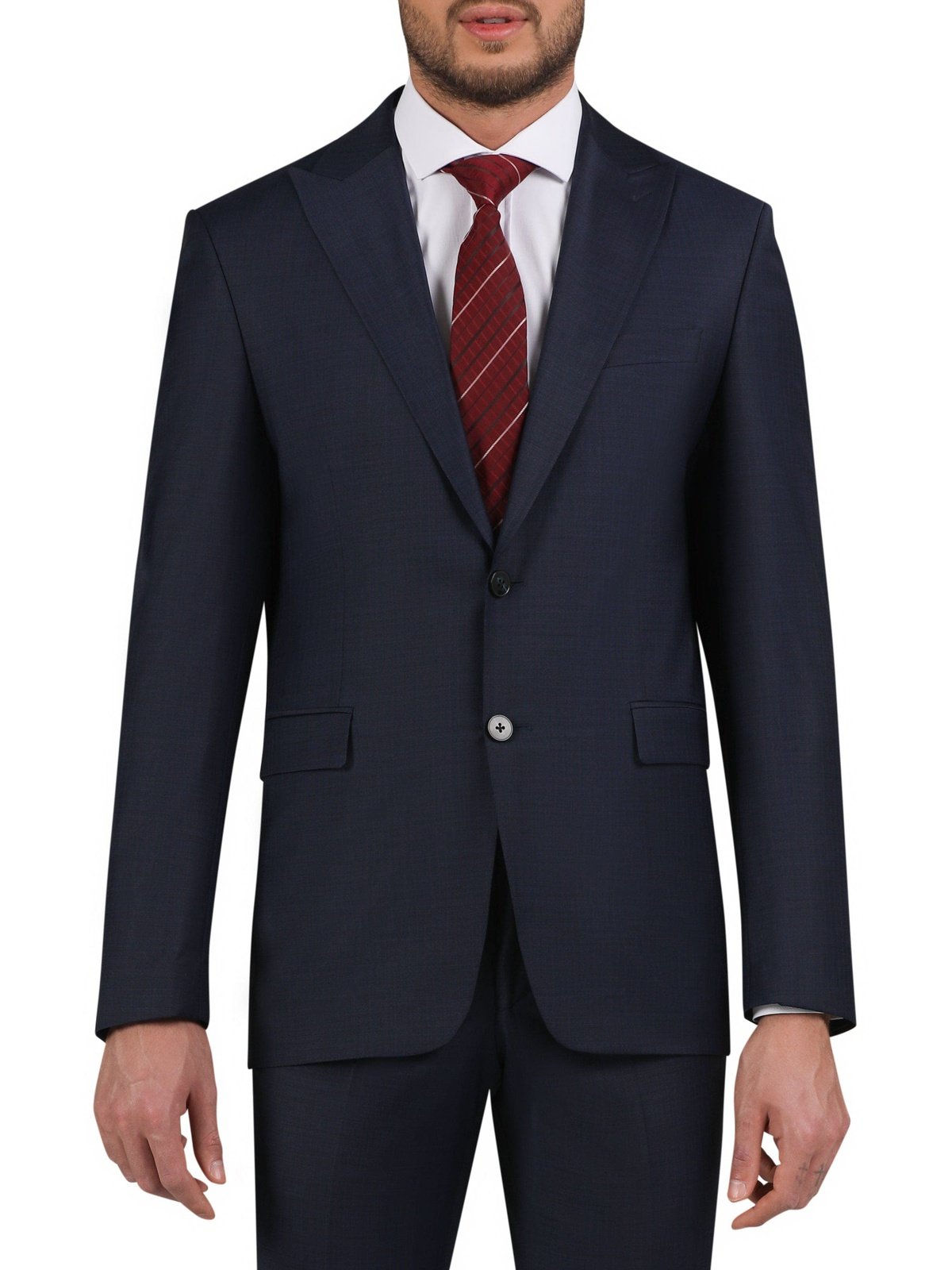 A finely made peak lapel suit at a reasonable price? You found it. This Slim Fit Navy Peak Lapel Suit is made from Wool blend fabric that drapes superbly across the body. The slim fit is modern and sharp. It’s the perfect suit for wedding parties and groomsmen, as well as for year-round business wear.