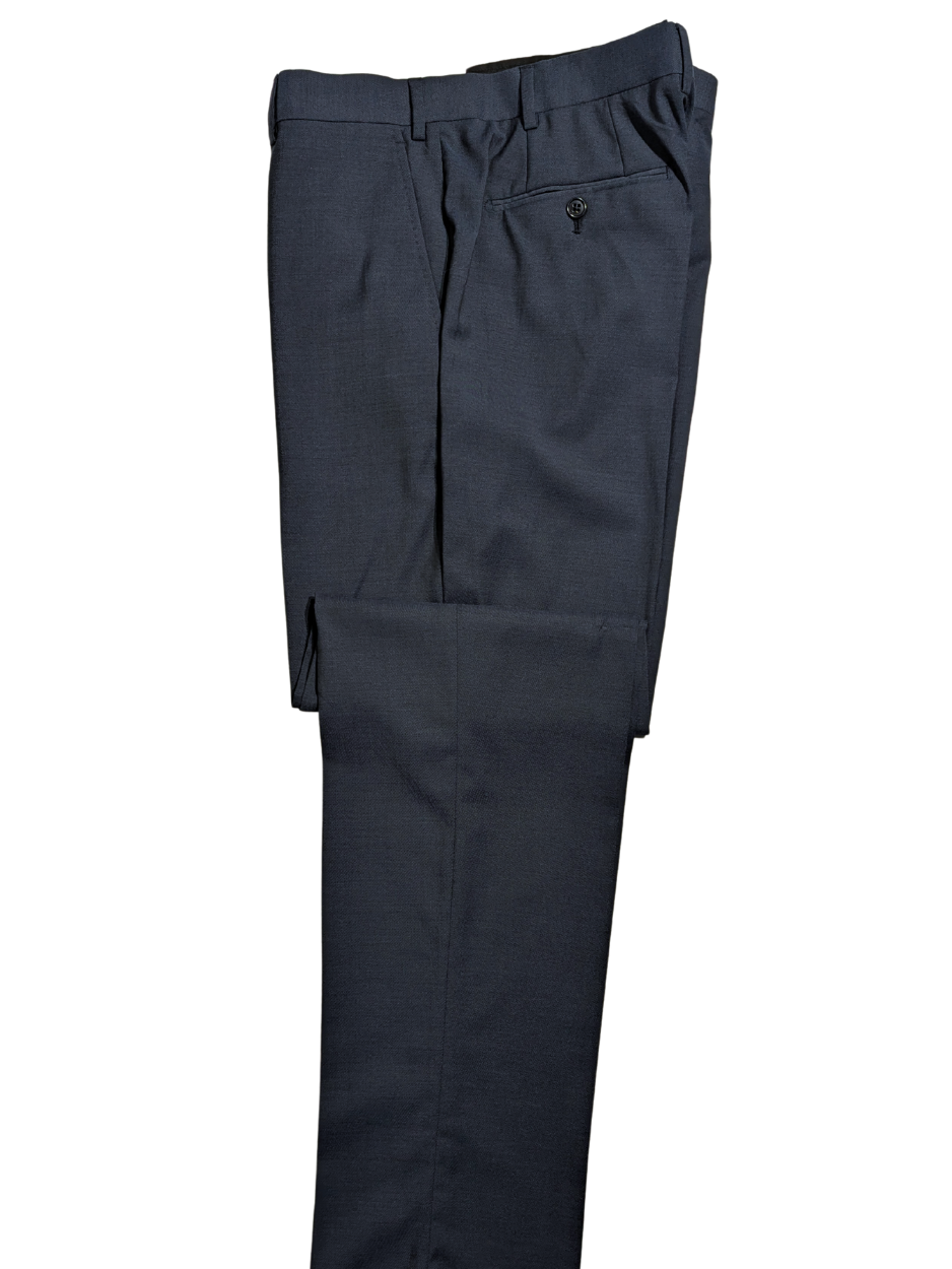 This Emporio Armani G-Line suit in dark blue wool blends classic tailoring with modern elegance. Designed in a slim fit, it features a notch lapel, two-button closure, and dual vents for comfort and style. A sharp choice for business or formal wear.