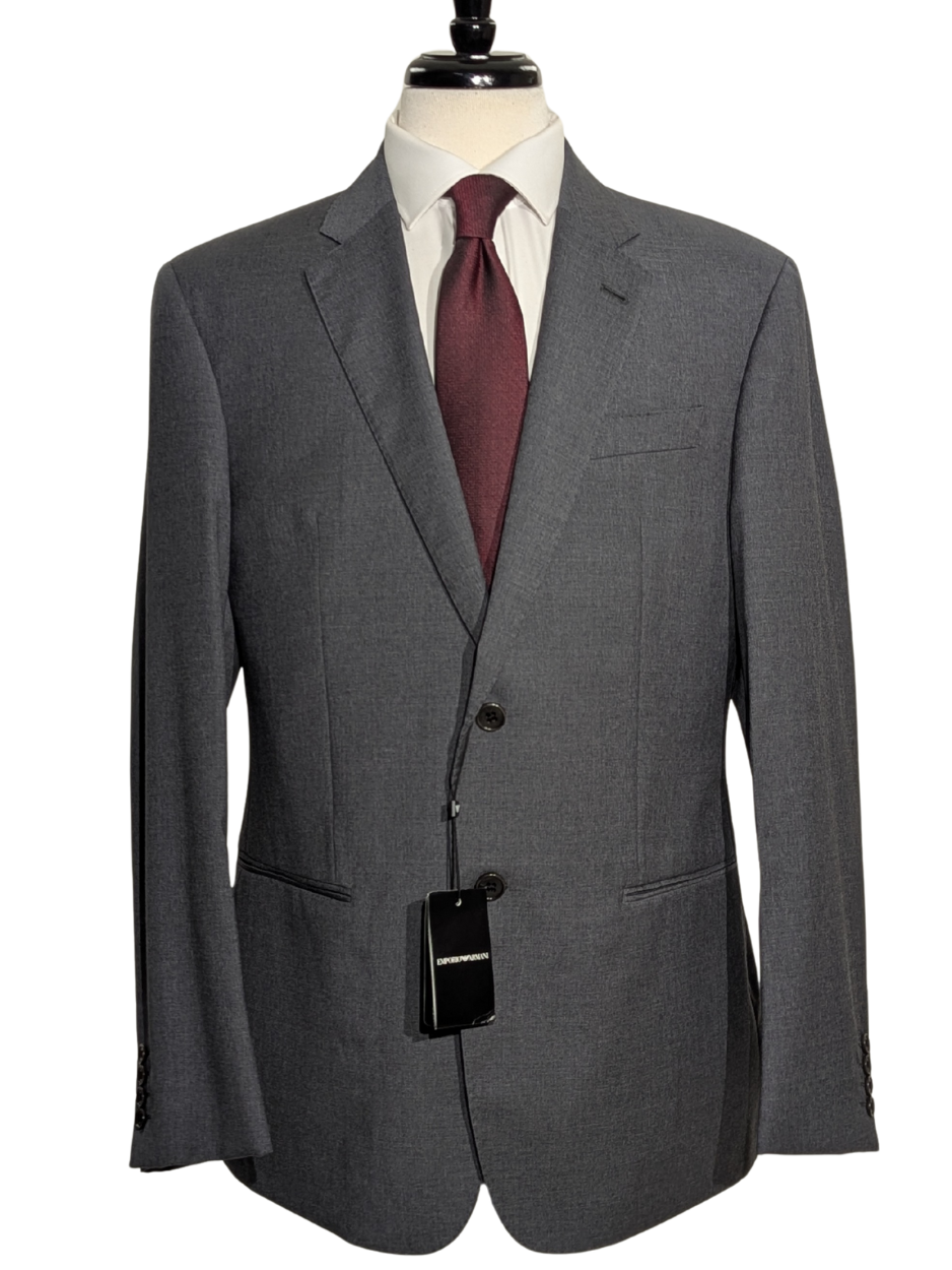 Emporio Armani G-Line Solid Gray 100% Wool Notch Lapel Slim Fit 2 Button Suit 42R