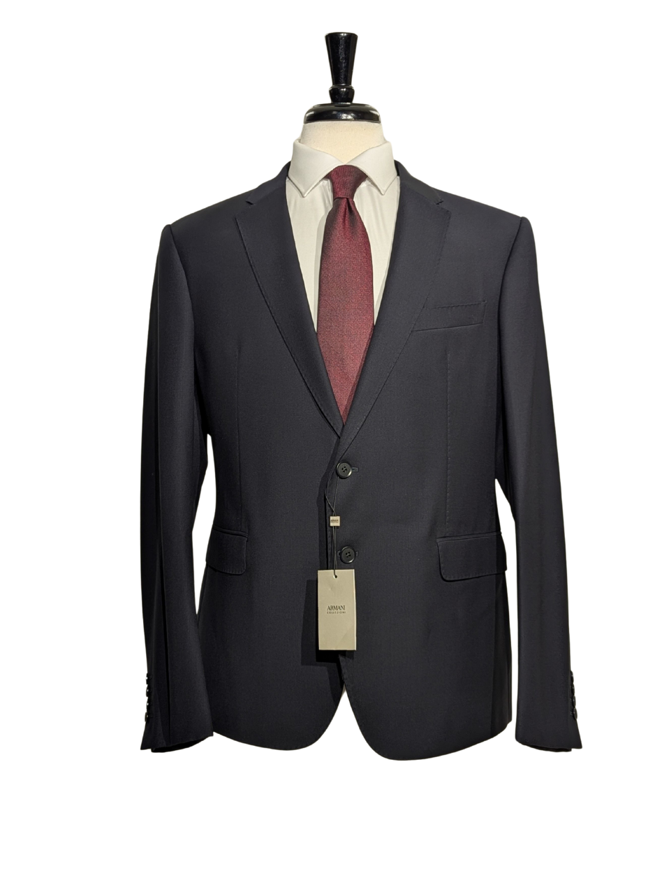 Armani Collezioni M-Line Solid Black Notch Lapel Modern Fit 2 Button Wool Suit 46R