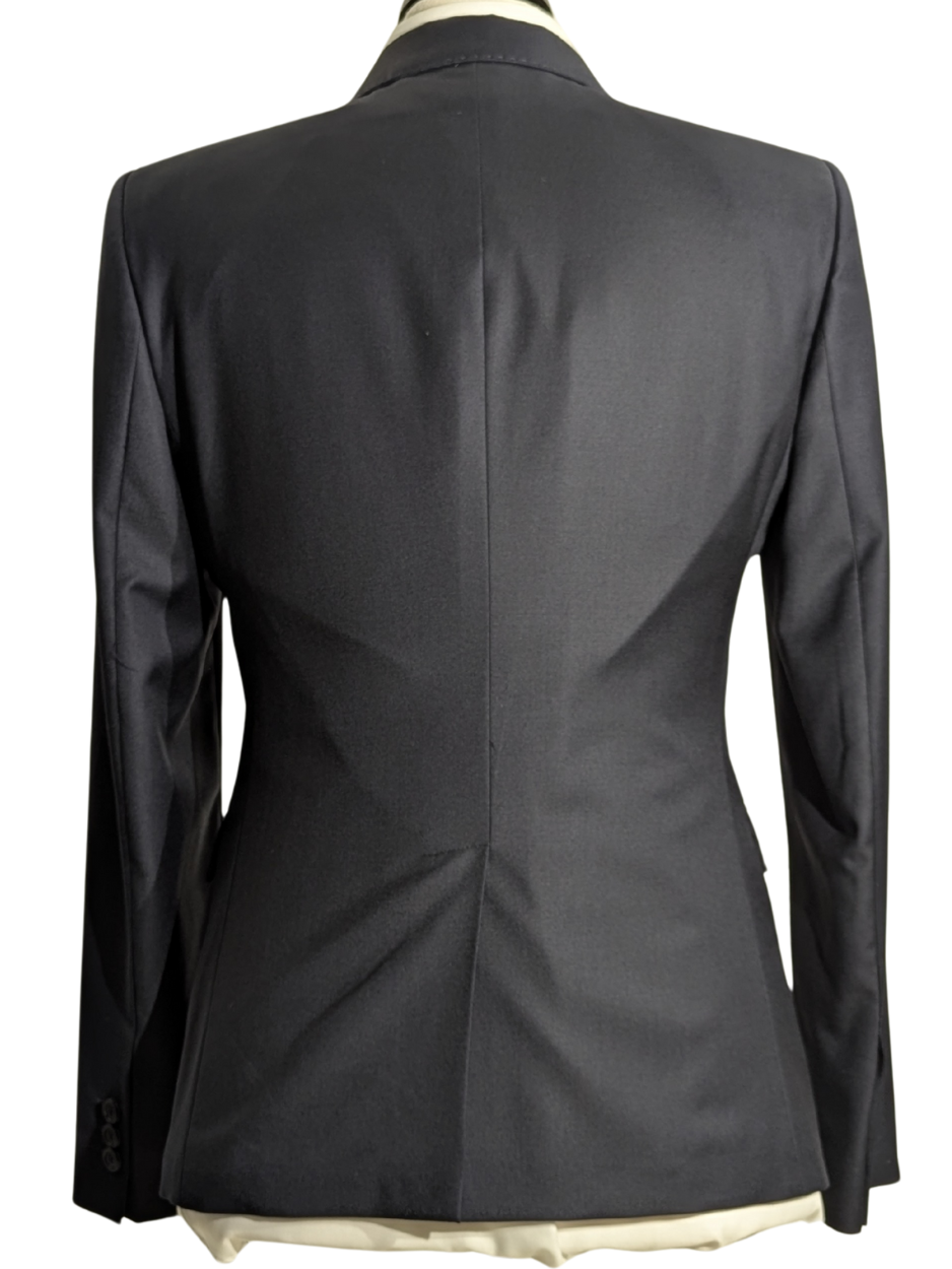 This Emporio Armani suit in navy blue wool blends classic tailoring with modern elegance. Designed in a classic fit, it features a notch lapel, two-button closure, and single vent for comfort and style. A sharp choice for business or formal wear.