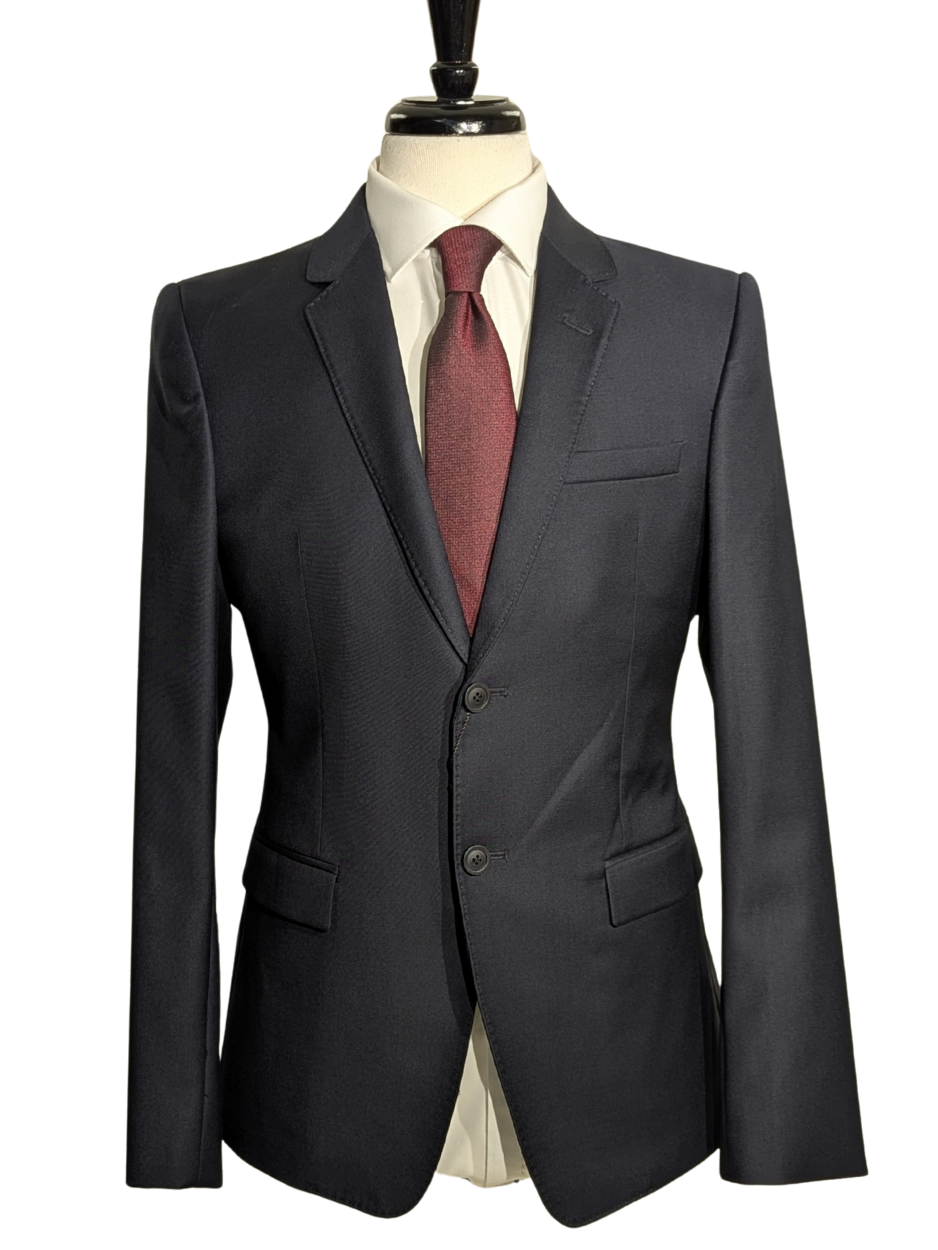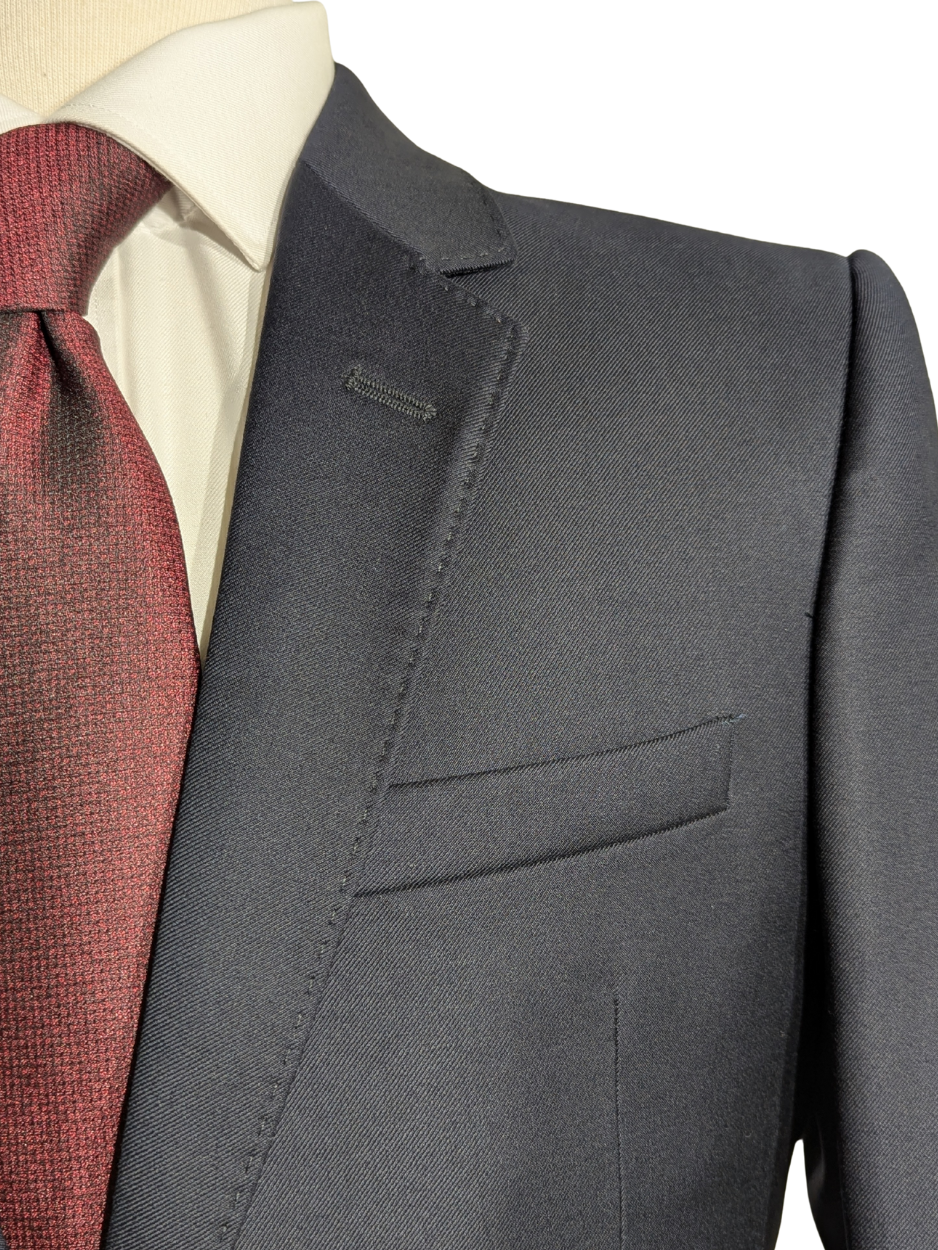 Emporio Armani Solid Navy Blue Classic Fit Notch Lapel 2 Button Wool Suit 38R