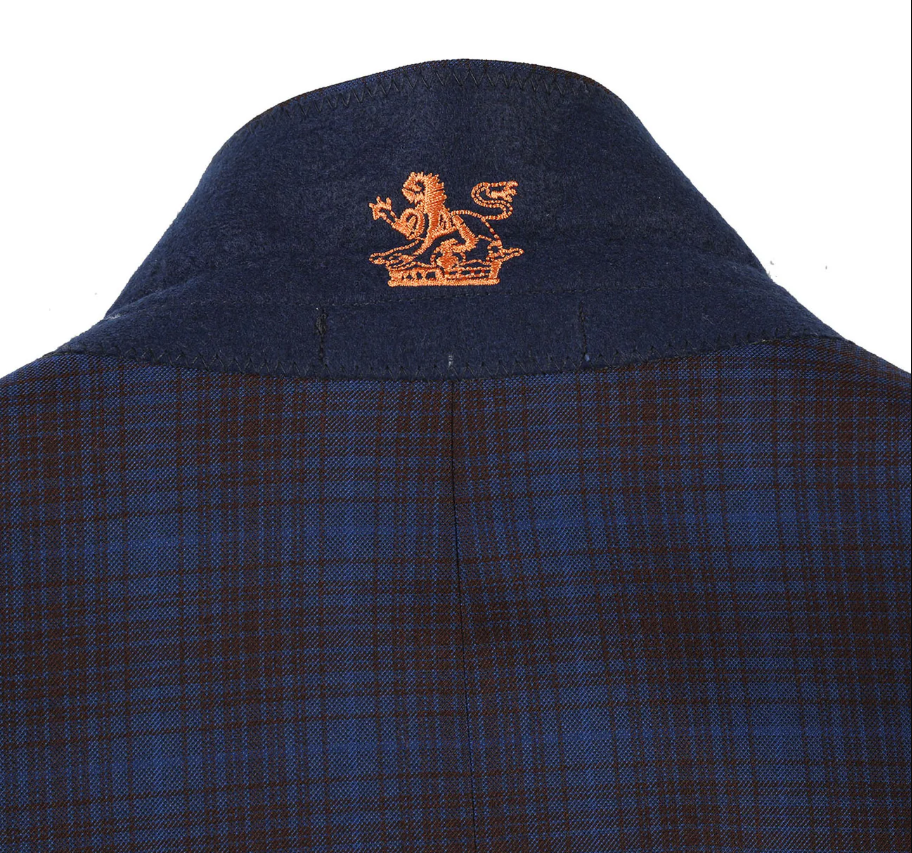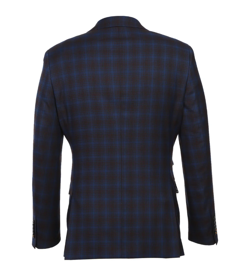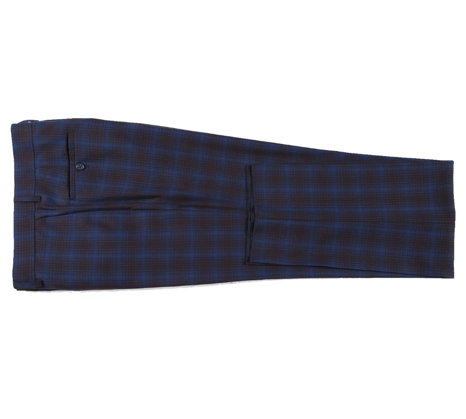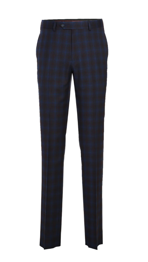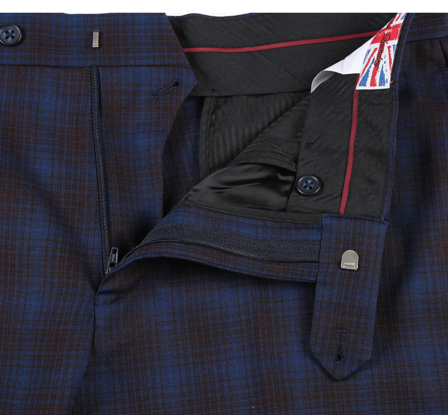 English Laundry Mens Navy with Brown Check Slim Fit Peak Lapel 2 Button Stretch Suit