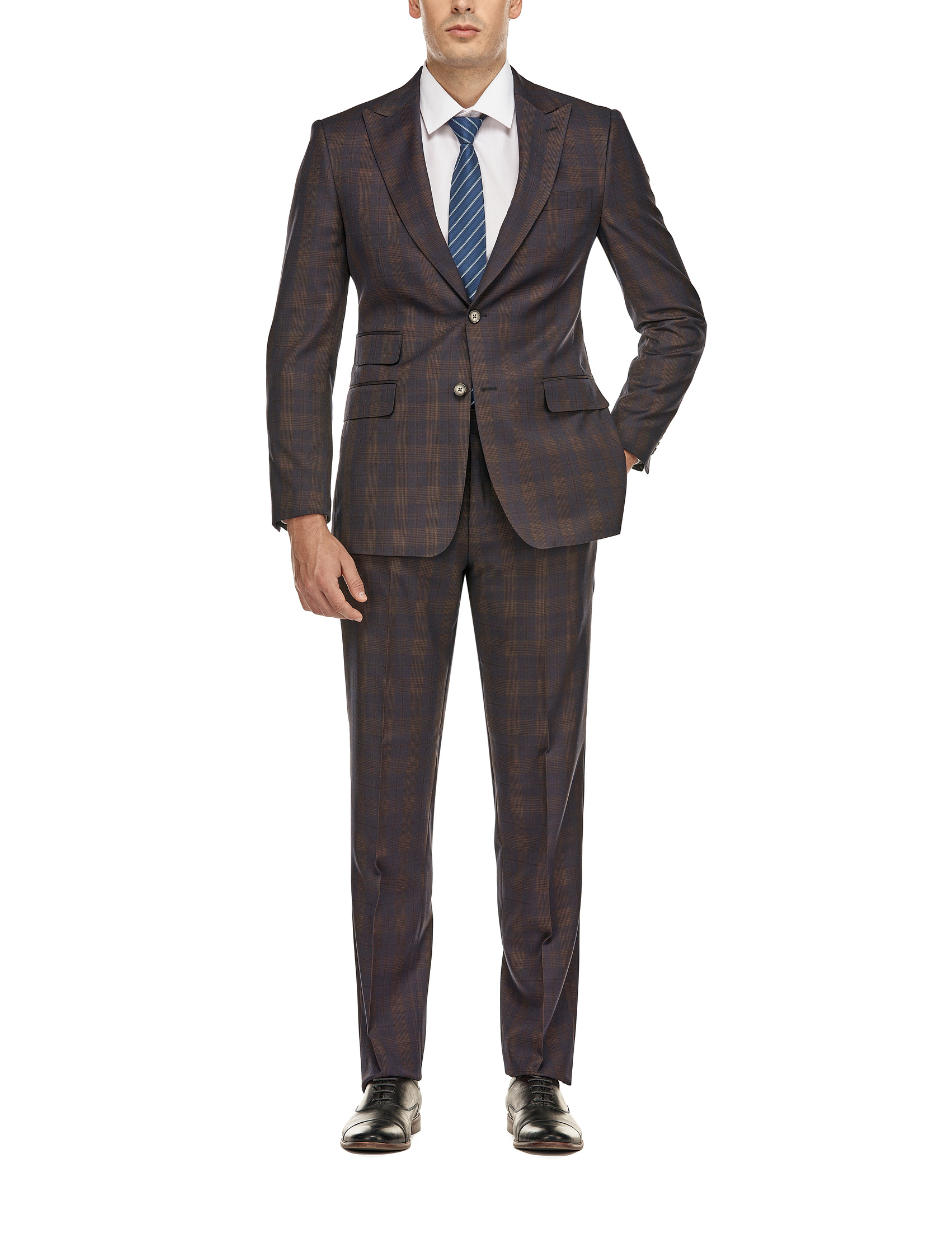 Looking for a finely tailored peak lapel suit at an unbeatable price? You’ve found it. This English Laundry plaid navy blue and brown suit is crafted from a premium blend of polyester, rayon and spandex, offering structure, flexibility, and all-day comfort. Designed in a slim fit, it delivers a sharp, modern silhouette perfect for weddings, special events, or standout office wear.