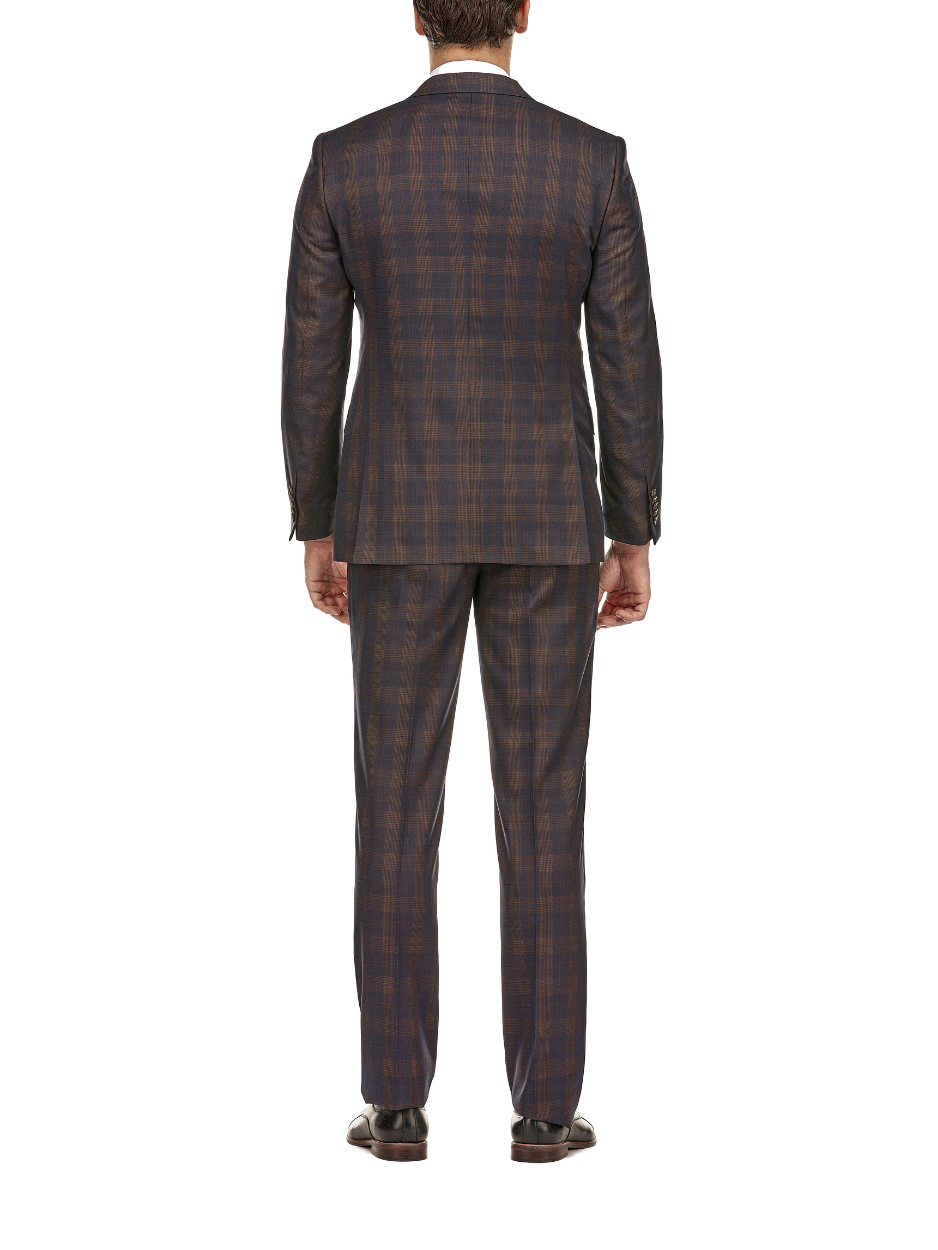 English Laundry Mens Plaid Navy With Brown Slim Fit Peak Lapel Stretch 2 Button Suit