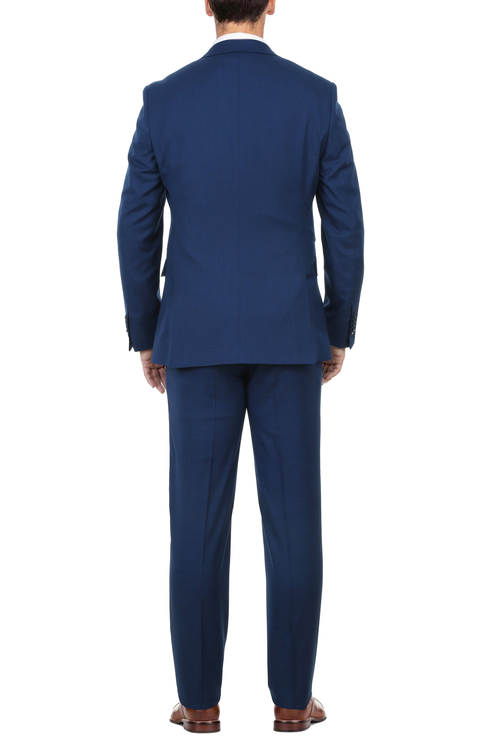 English Laundry Mens Solid Blue Slim Fit Peak Lapel Stretch 2 Button Suit