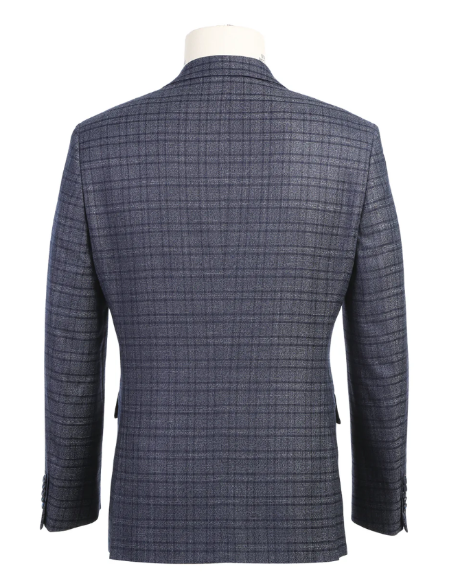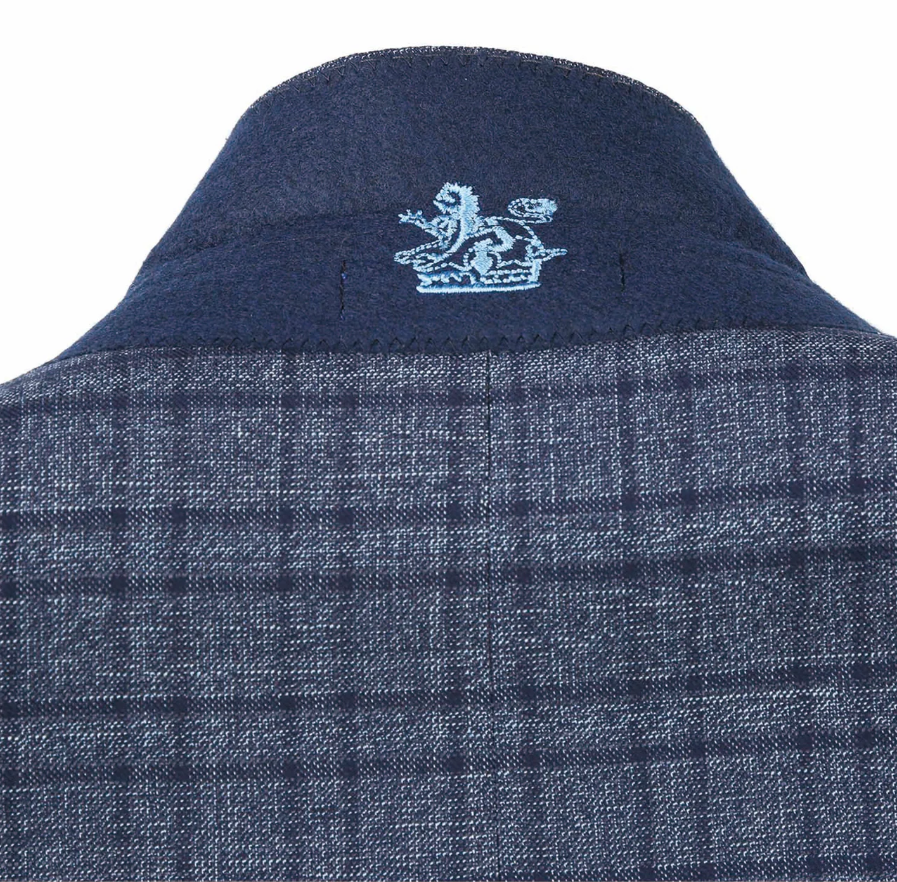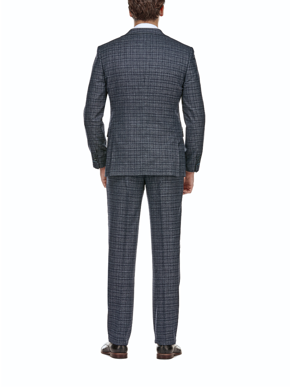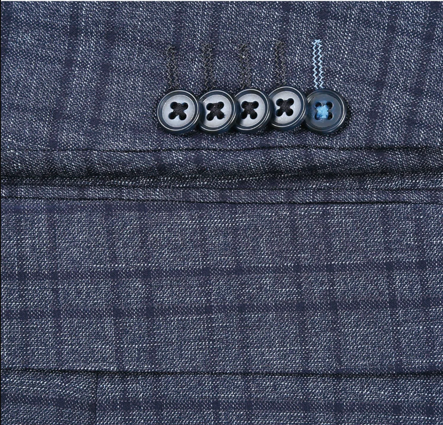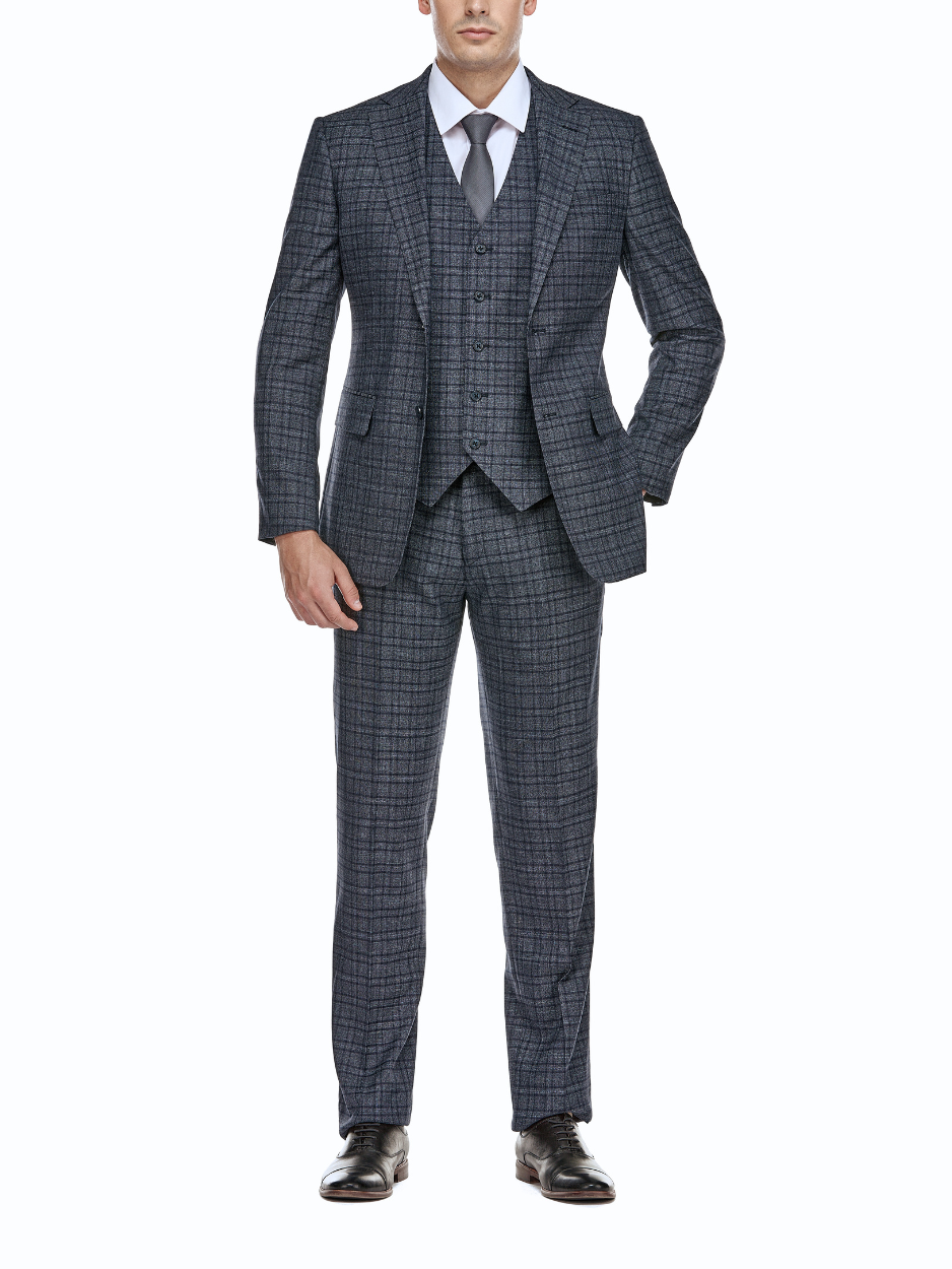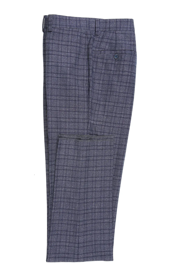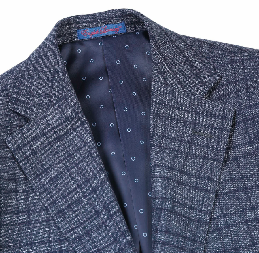 English Laundry Windowpane Blue Denim Style Slim Fit Notch Lapel Stretch 3-Piece Suit