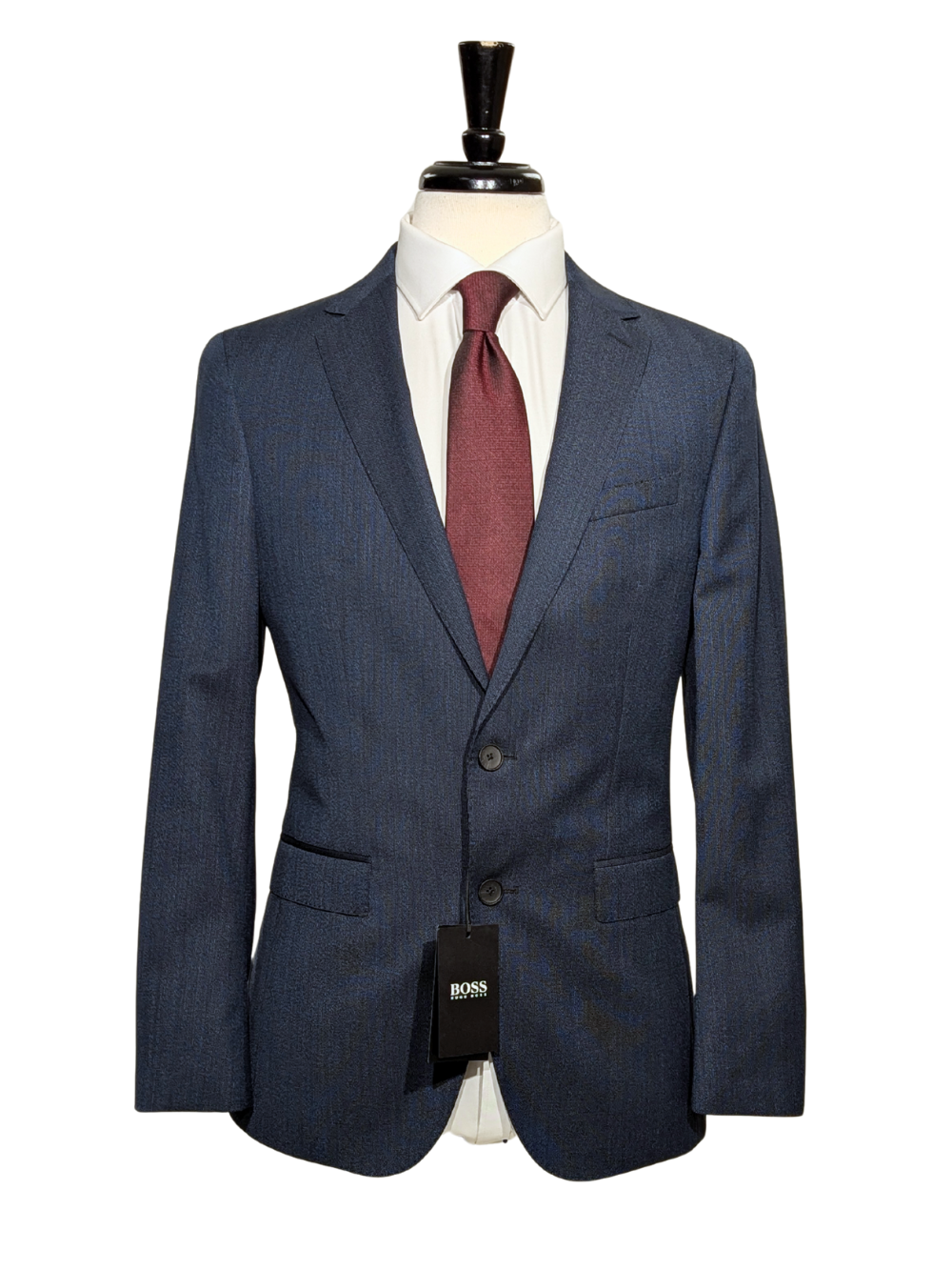 Hugo Boss Super 120s Navy Blue Textured Notch Lapels Slim Fit Wool 2-Button Suit - 38R