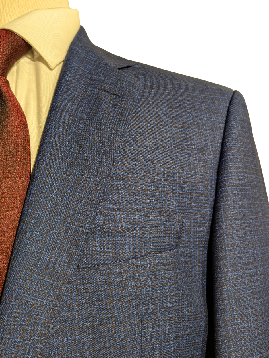 Hugo Boss Super 130 Drago Blue Check Wool Notch Lapel Two-Button Suit 44R