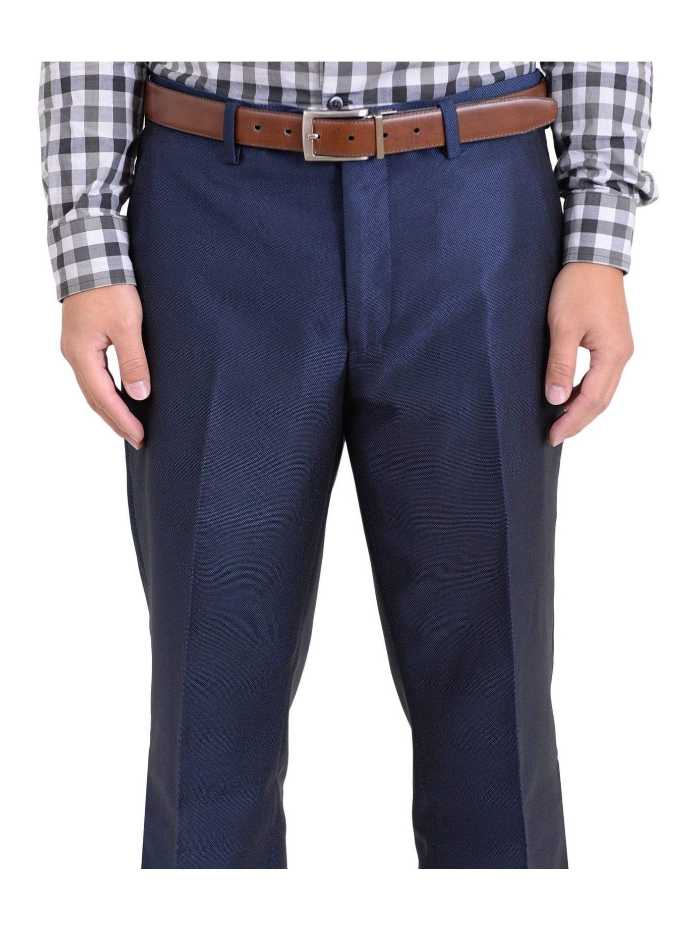 Ideal Slim Fit Navy Blue Pindot With Subtle Sheen Flat Front Wool Dress Pants