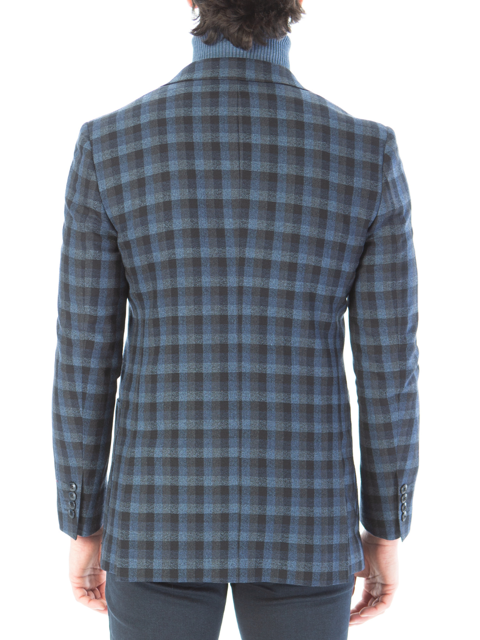 Sartoria Mazara Mens Classic Fit Black & Blue Check 100% Wool Blazer Sportcoat